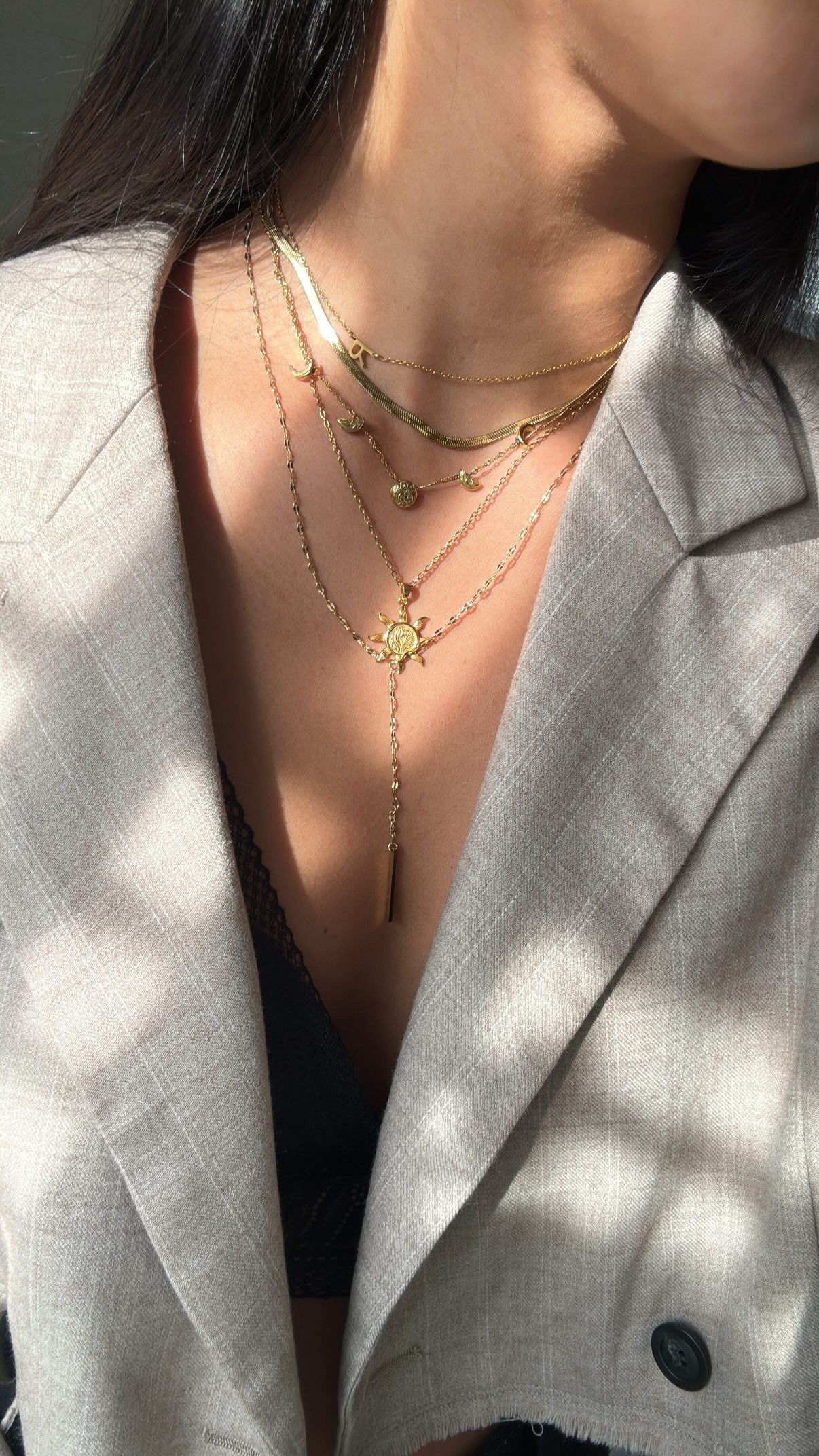 レイヤード全体をすっと引き締めてくれる名脇役。