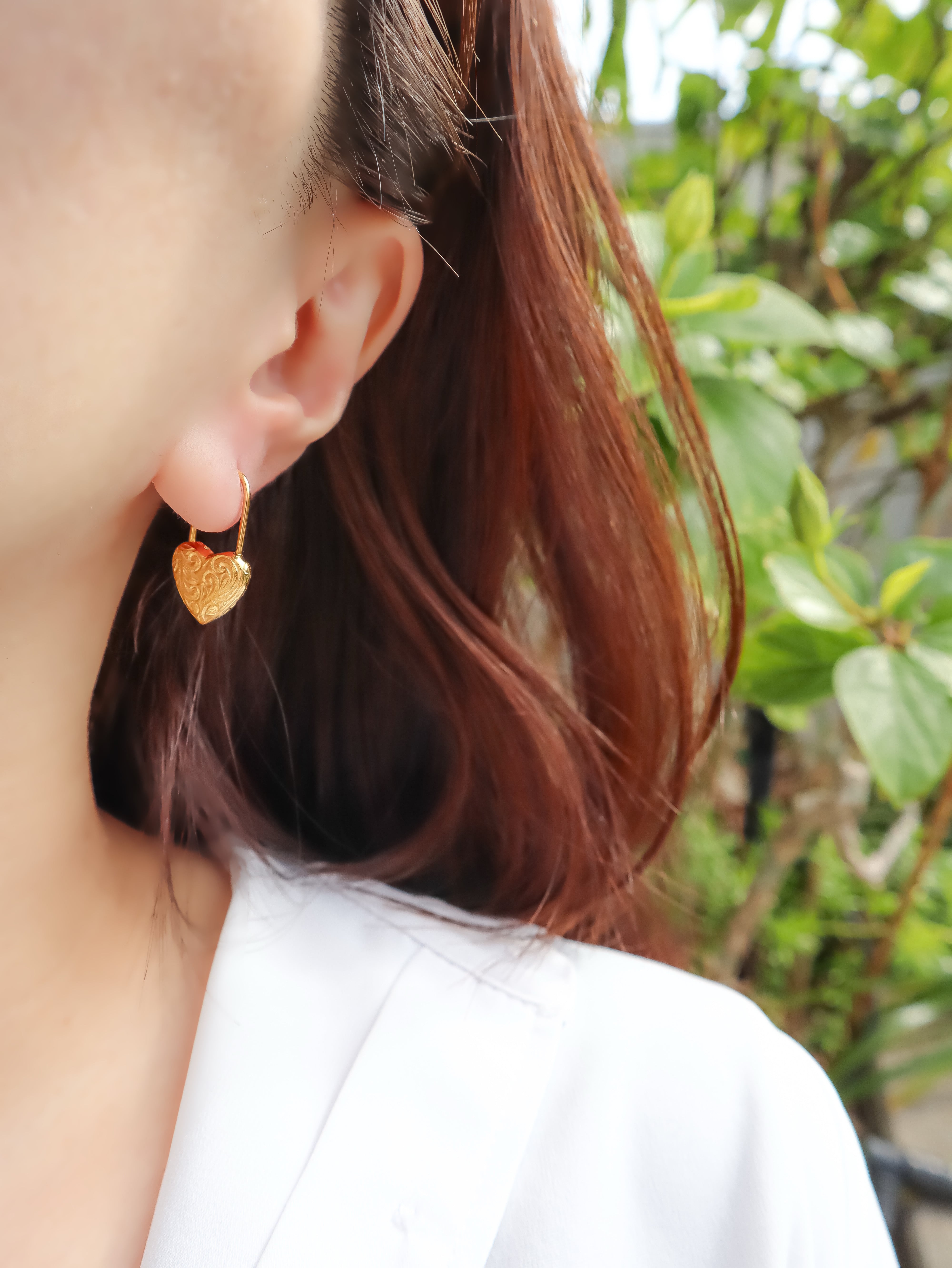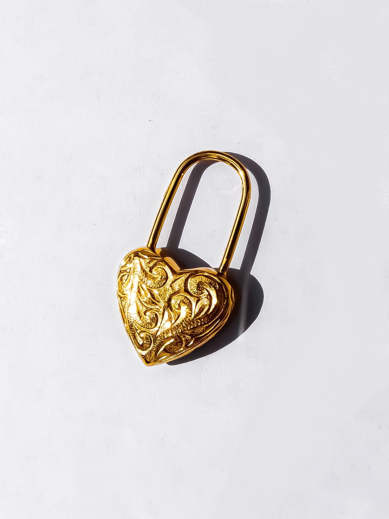 繊細な彫りが施されたハート型の南京錠モチーフが特徴で、上品な輝きを放ちます。