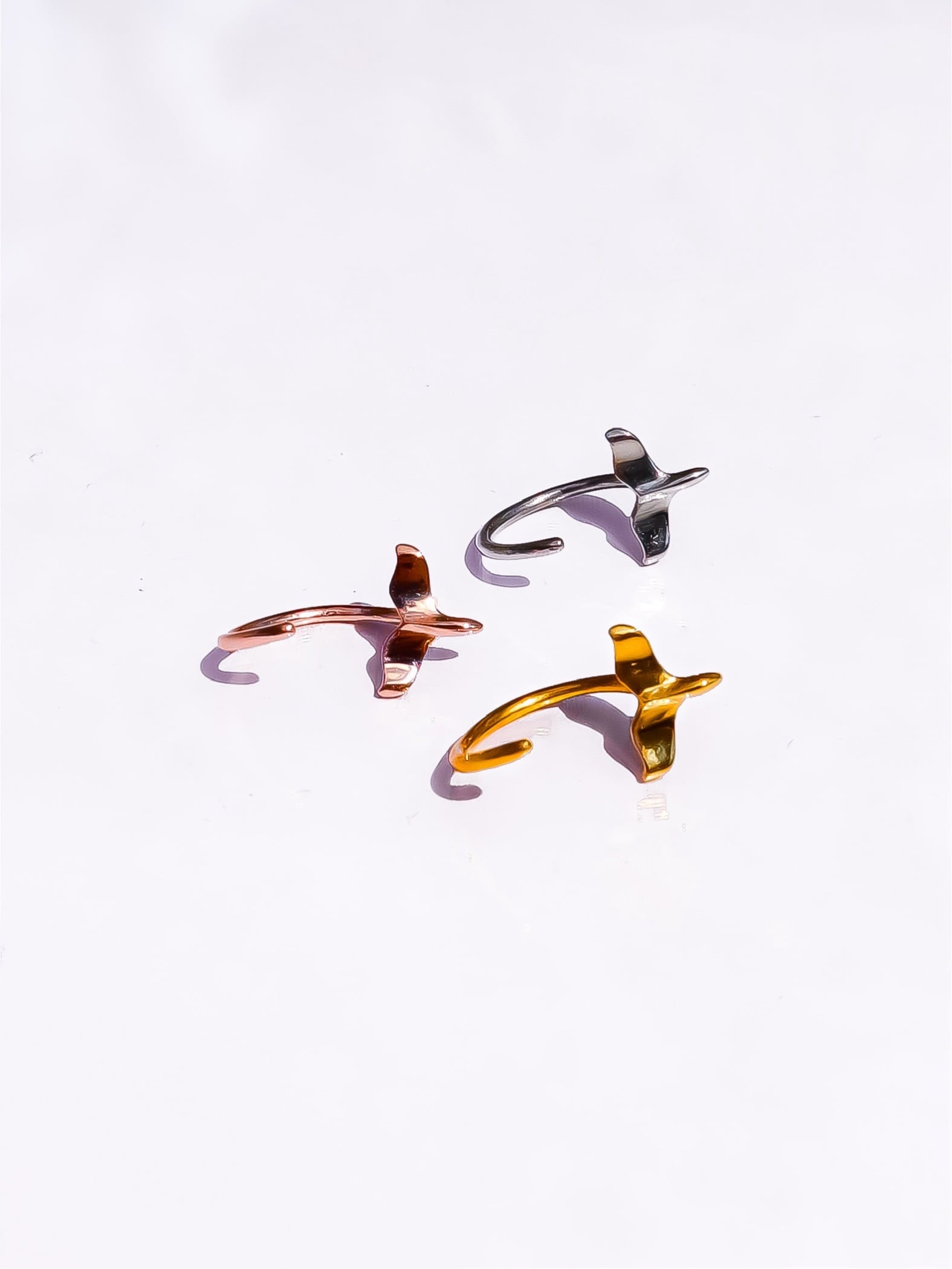 ハワイアンジュエリーの人気モチーフ、**「ホエールテール(クジラの尾)」をデザインしたピアス。