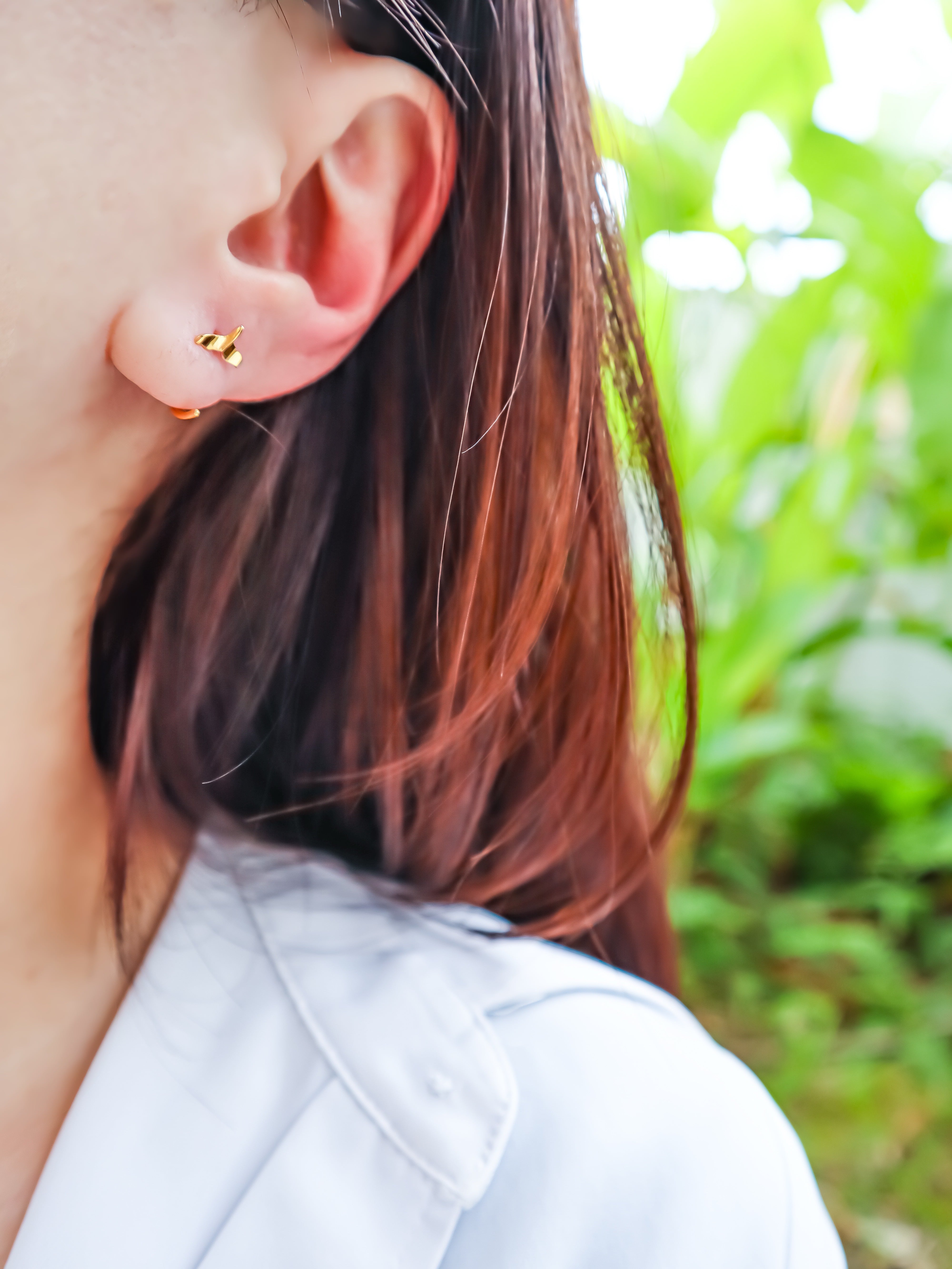 耳元でさりげなく揺れるデザインが、エレガントな印象をプラスしています。