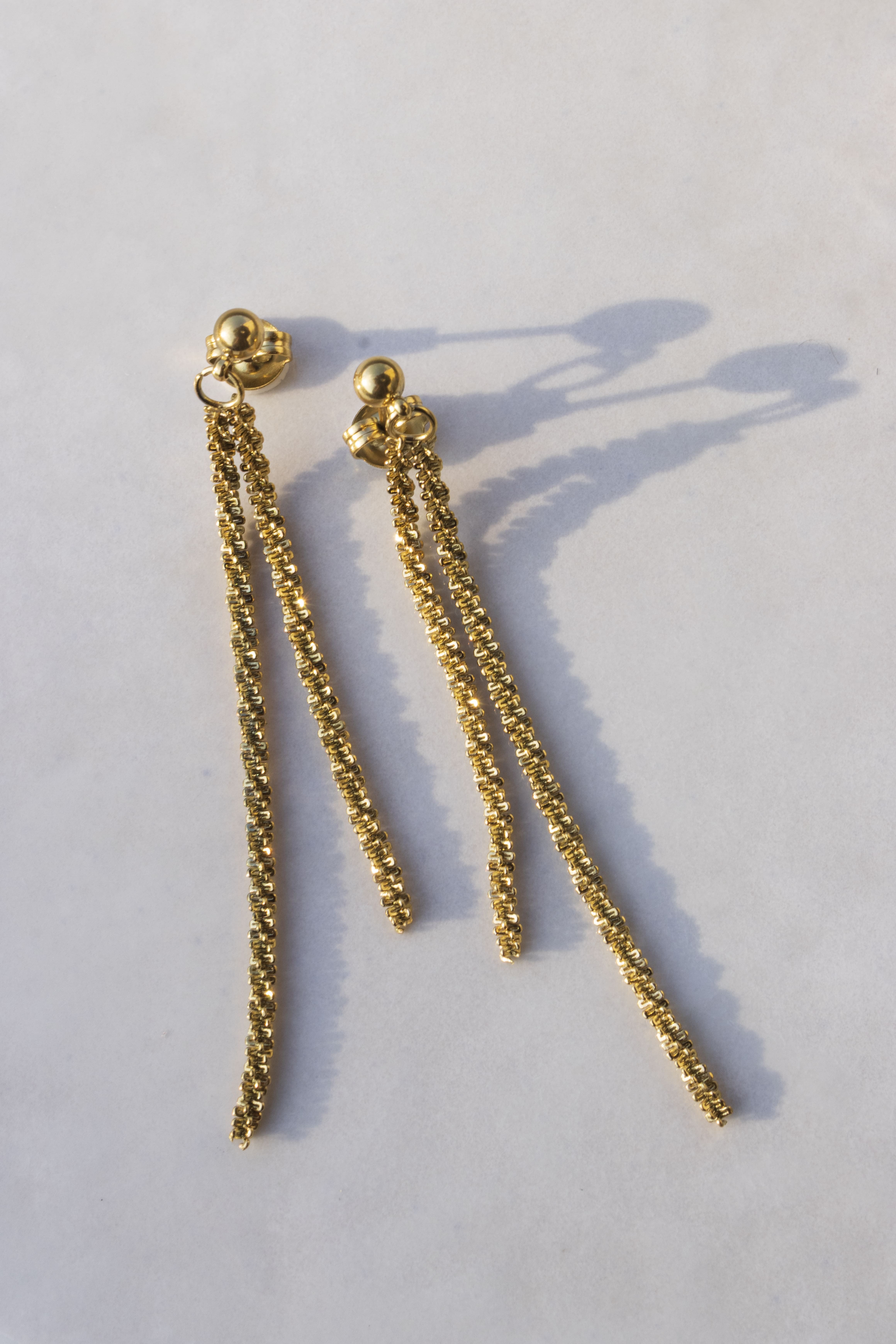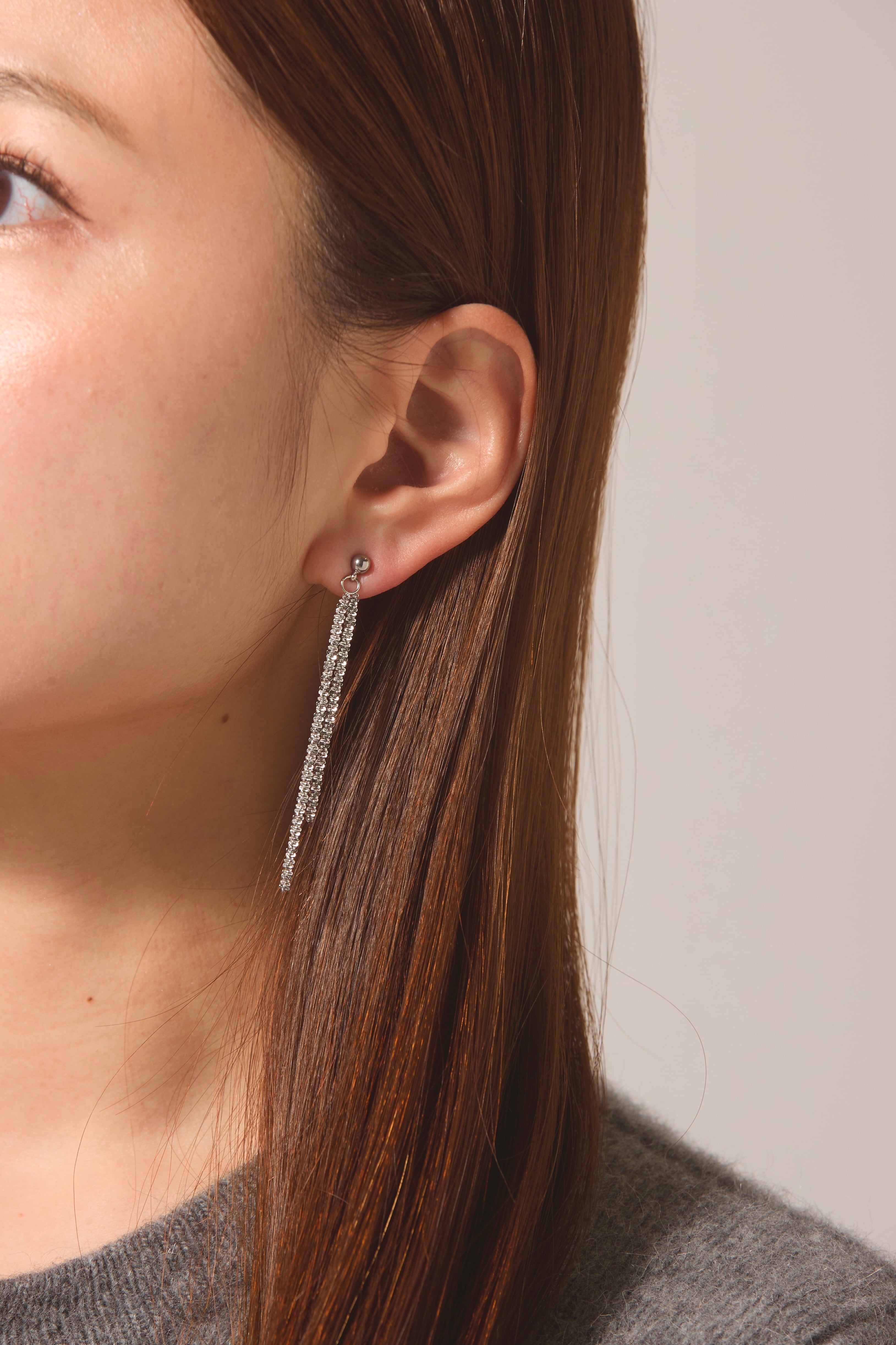 シンプルでありながら、存在感を放つラインチェーンピアス。
