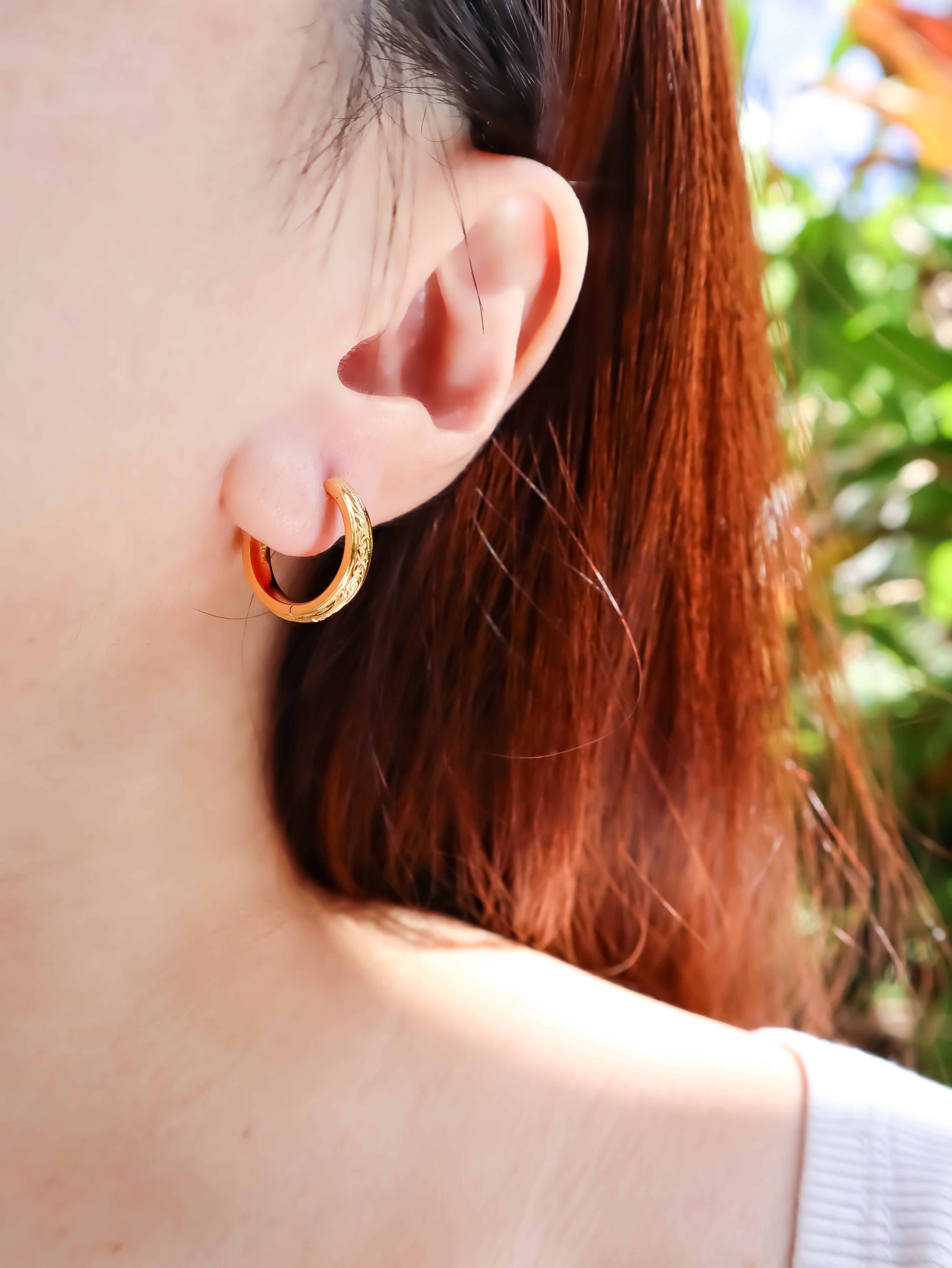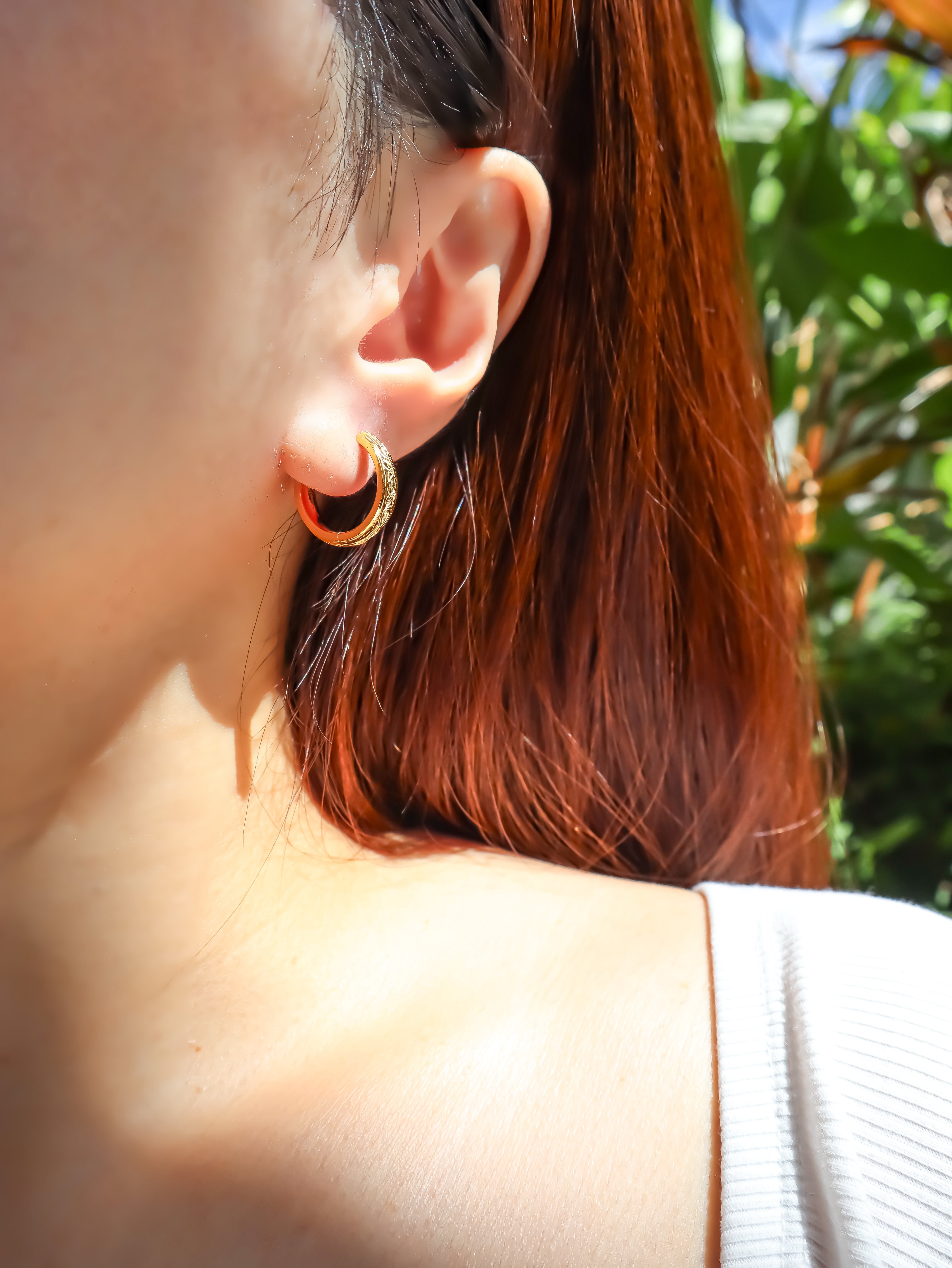 立体感と繊細さを兼ね備えた、クラシックハワイアンフープピアス。