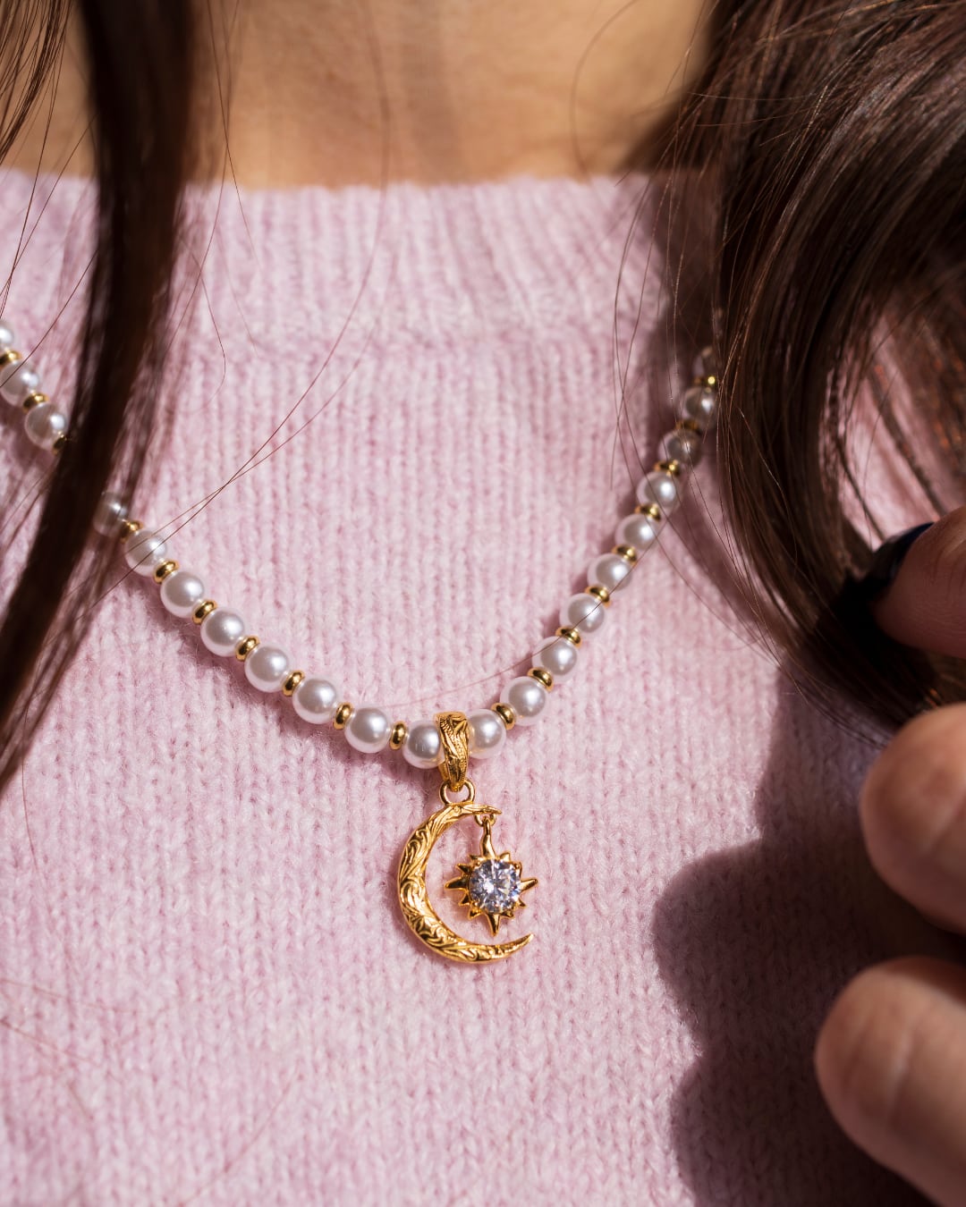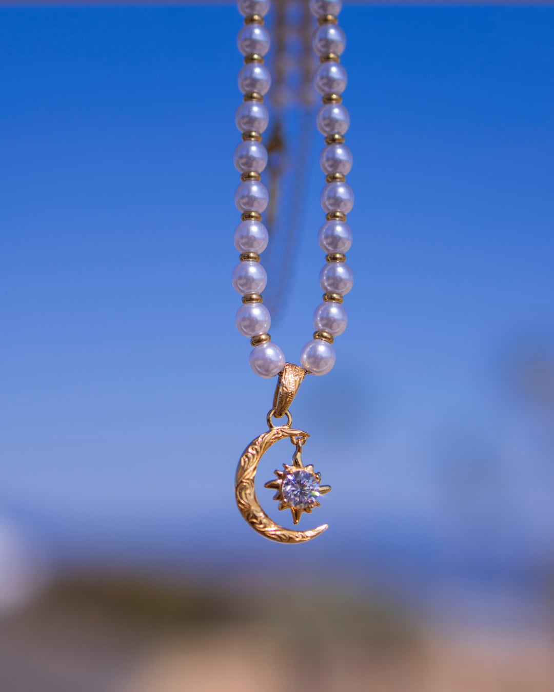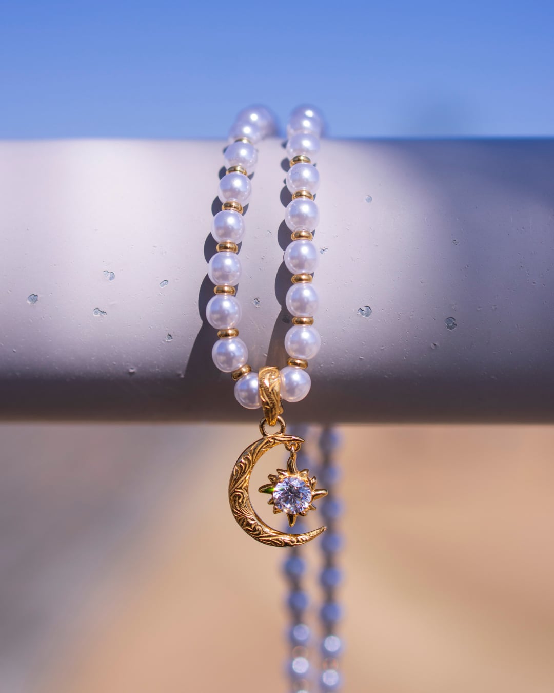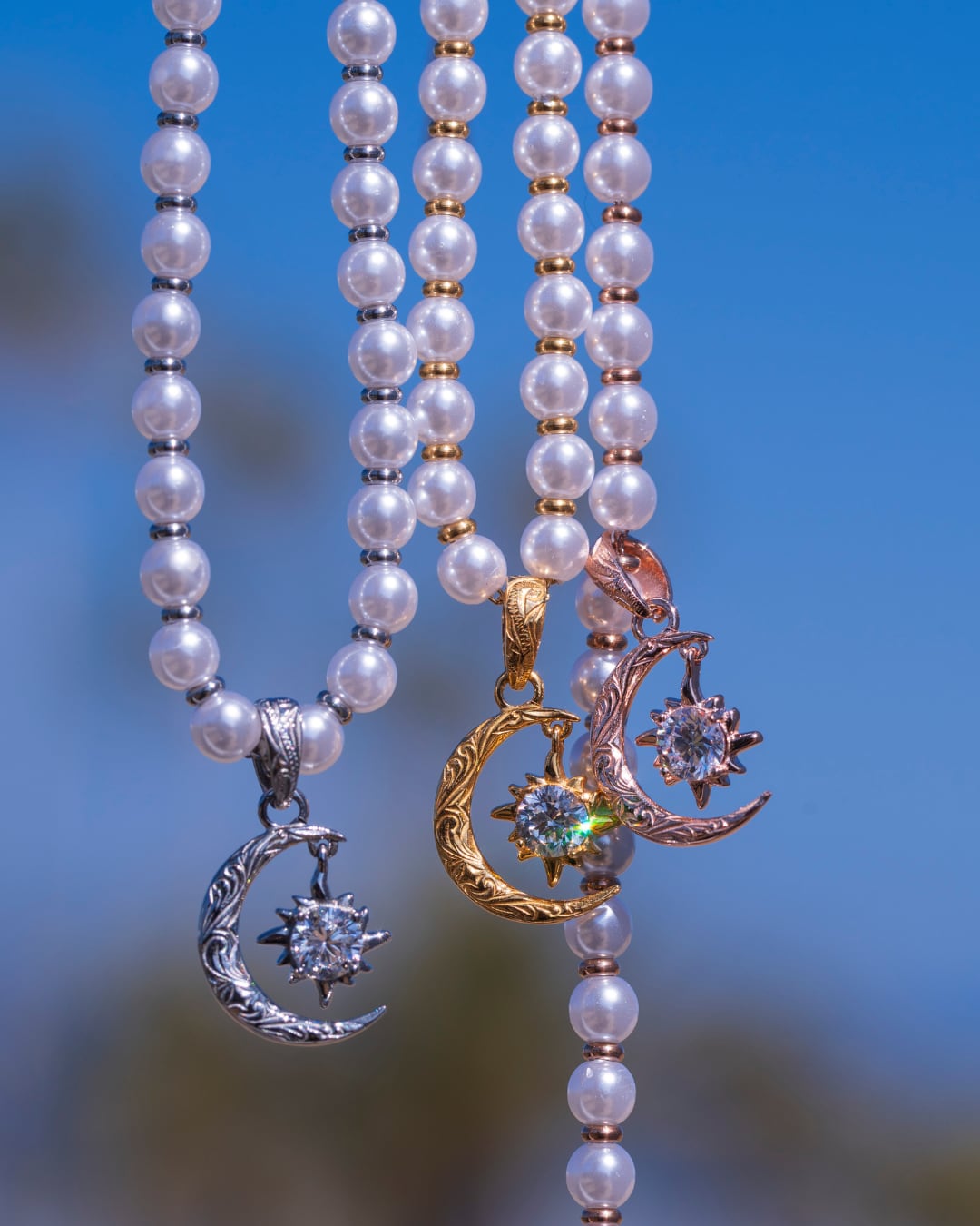 Pearl×sun and moon necklace