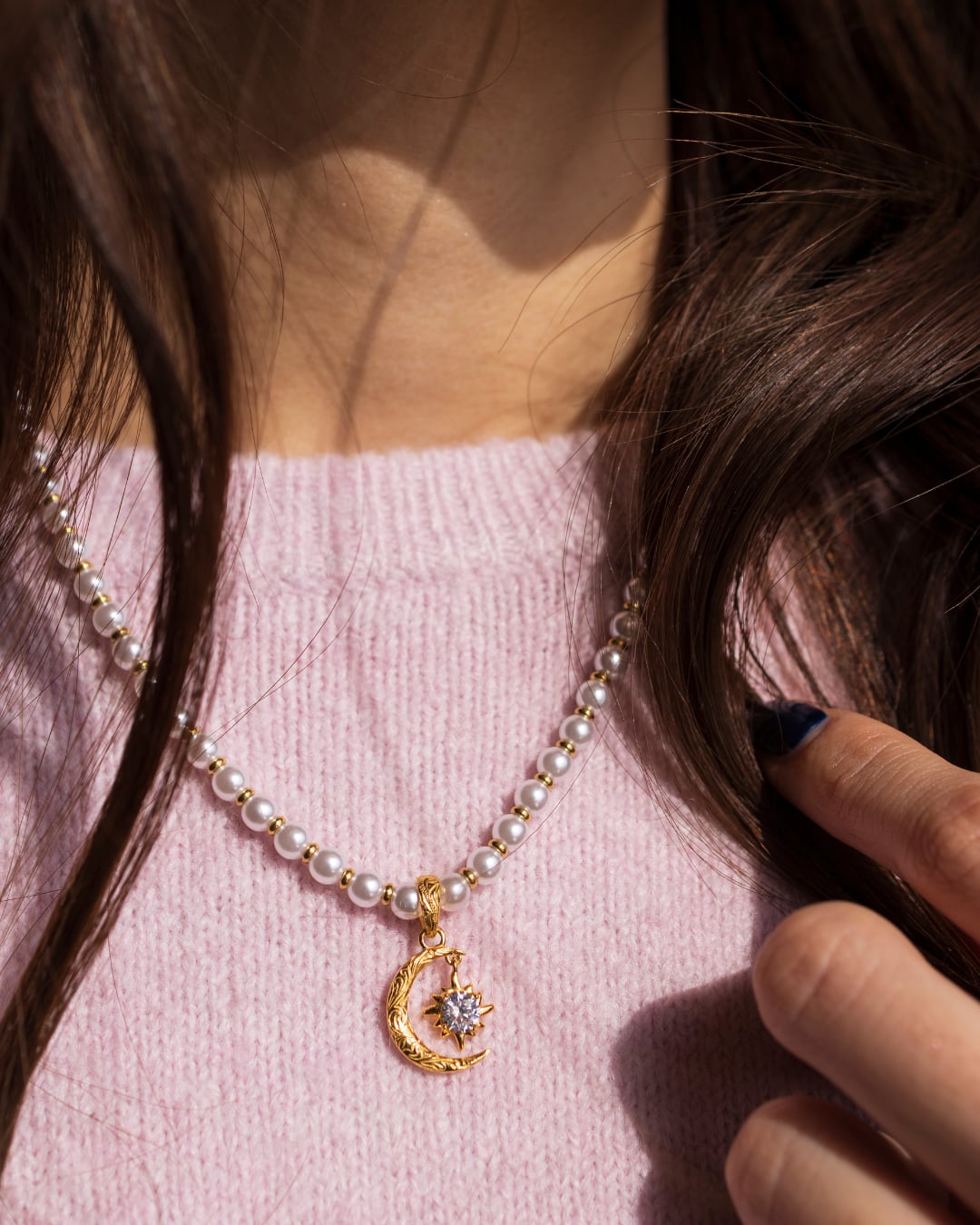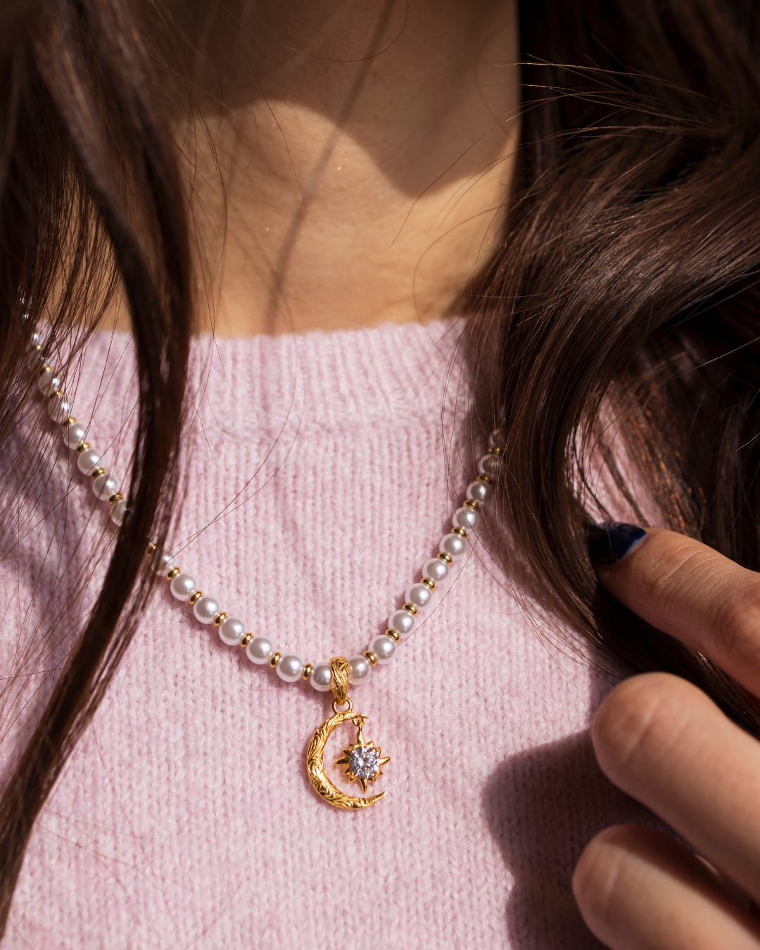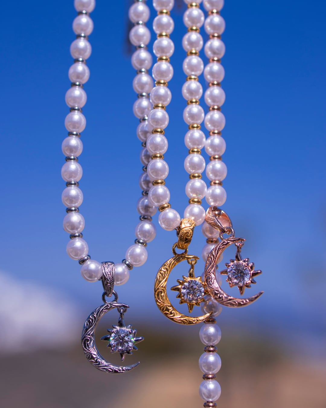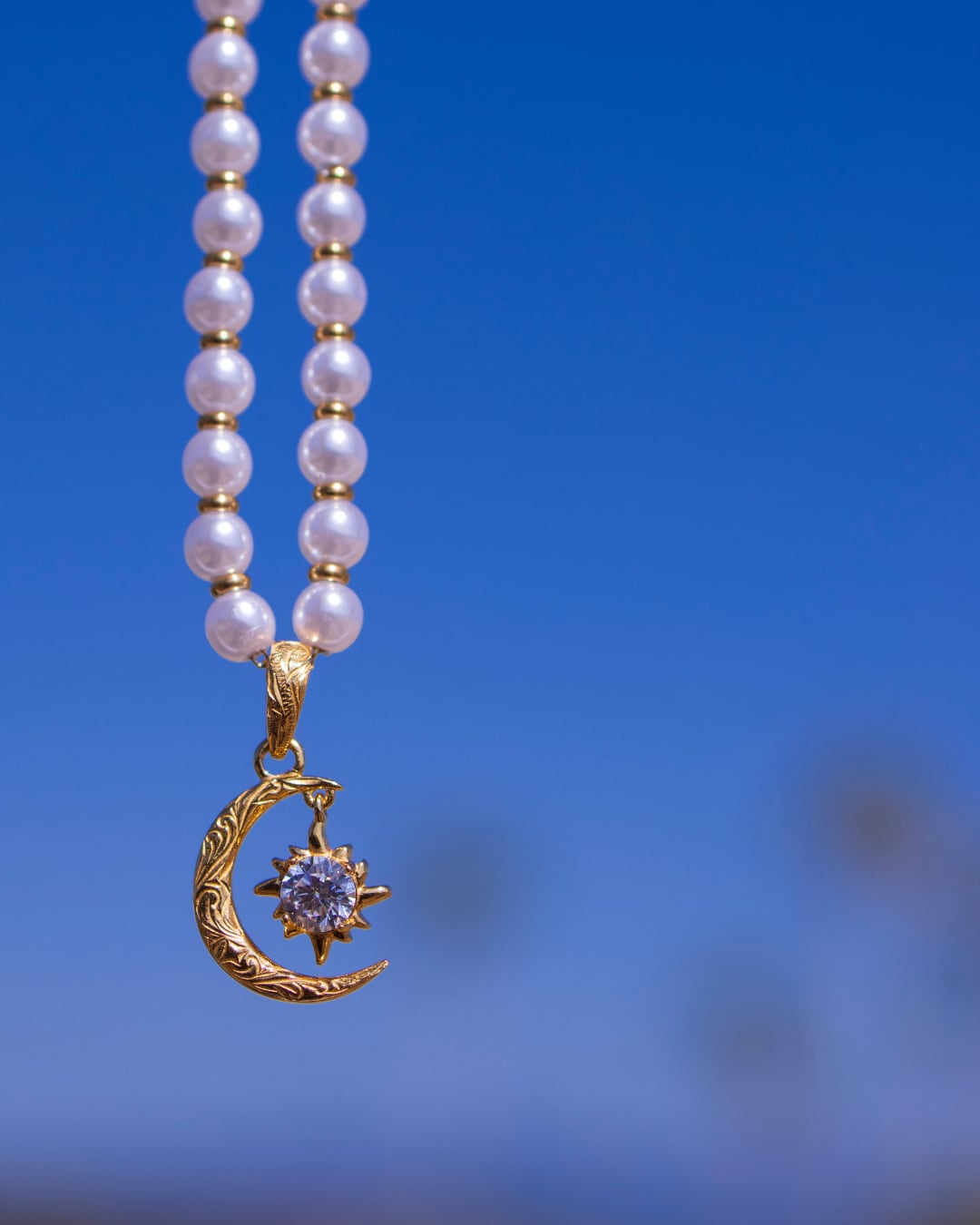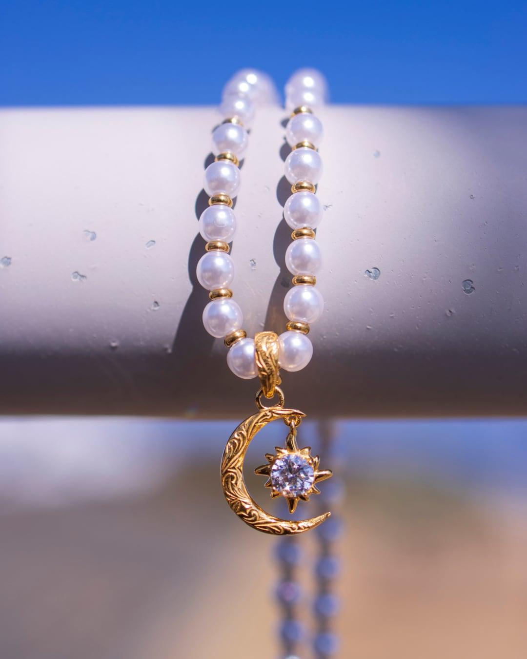 Pearl×sun and moon necklace