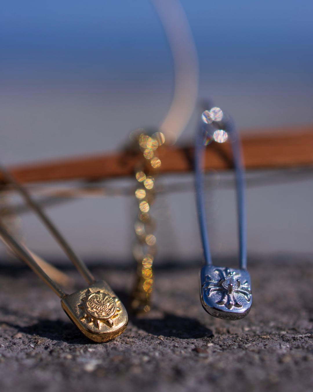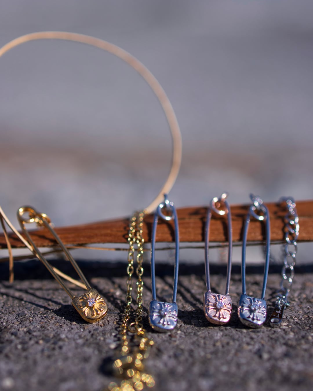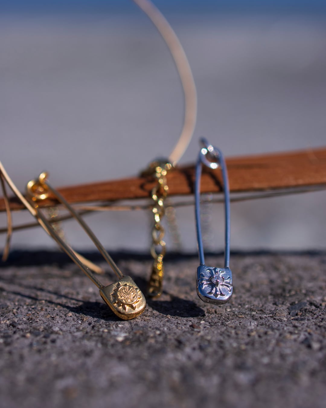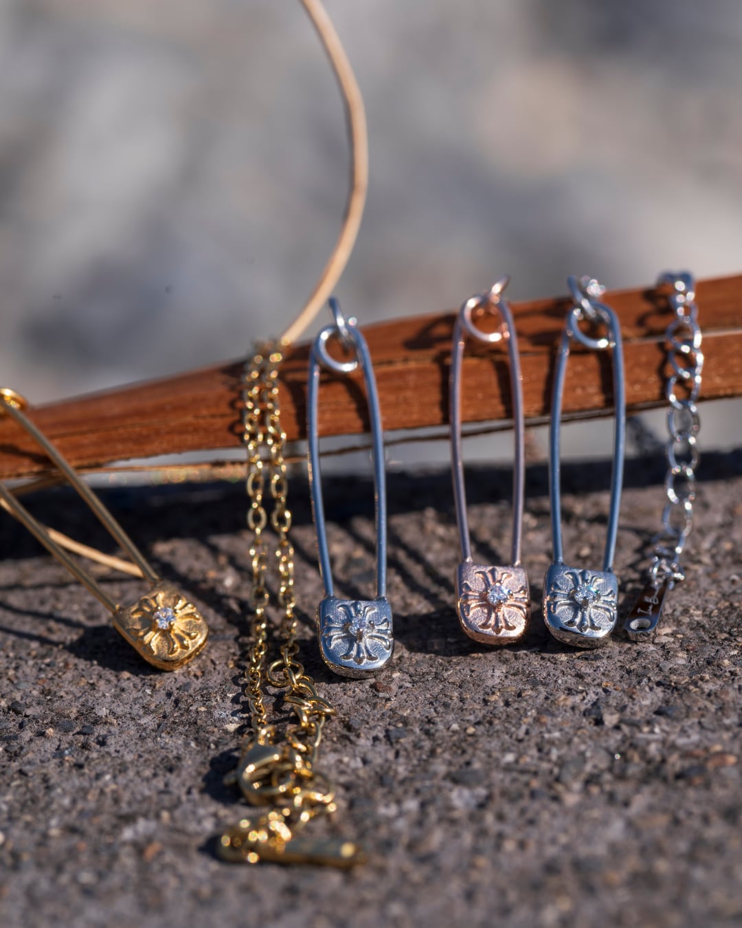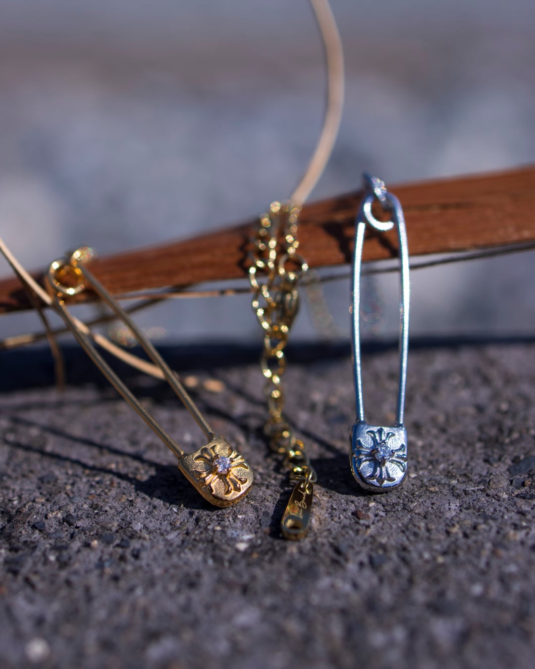 ストリート感のあるセーフティピンを、