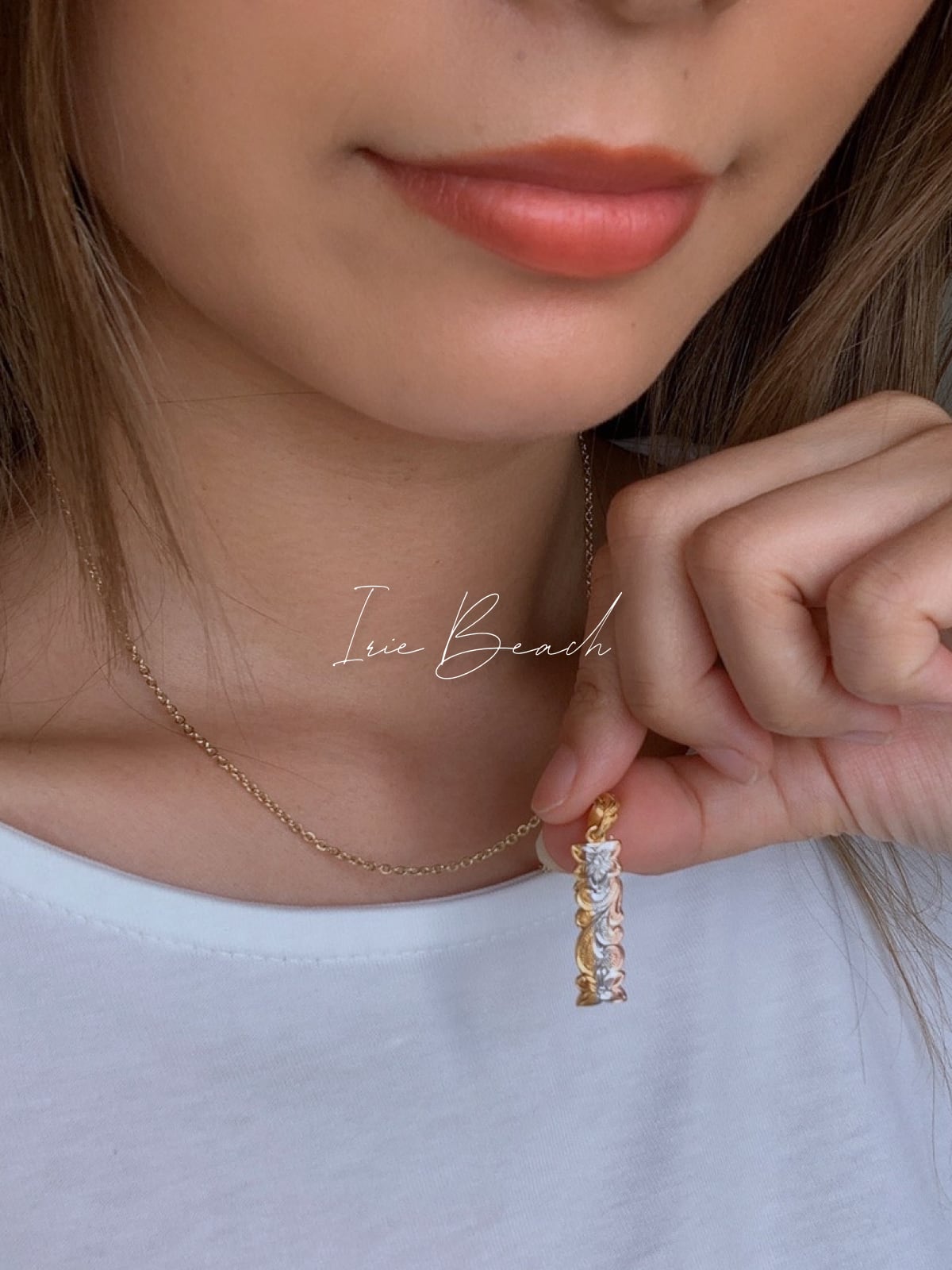 ハワイアンジュエリーの基本柄のプルメリアとスクロール柄を