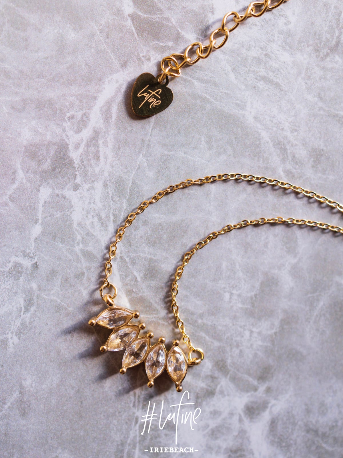 アマンド型のジルコニアを5石を丁寧に爪留めしたデザイン。