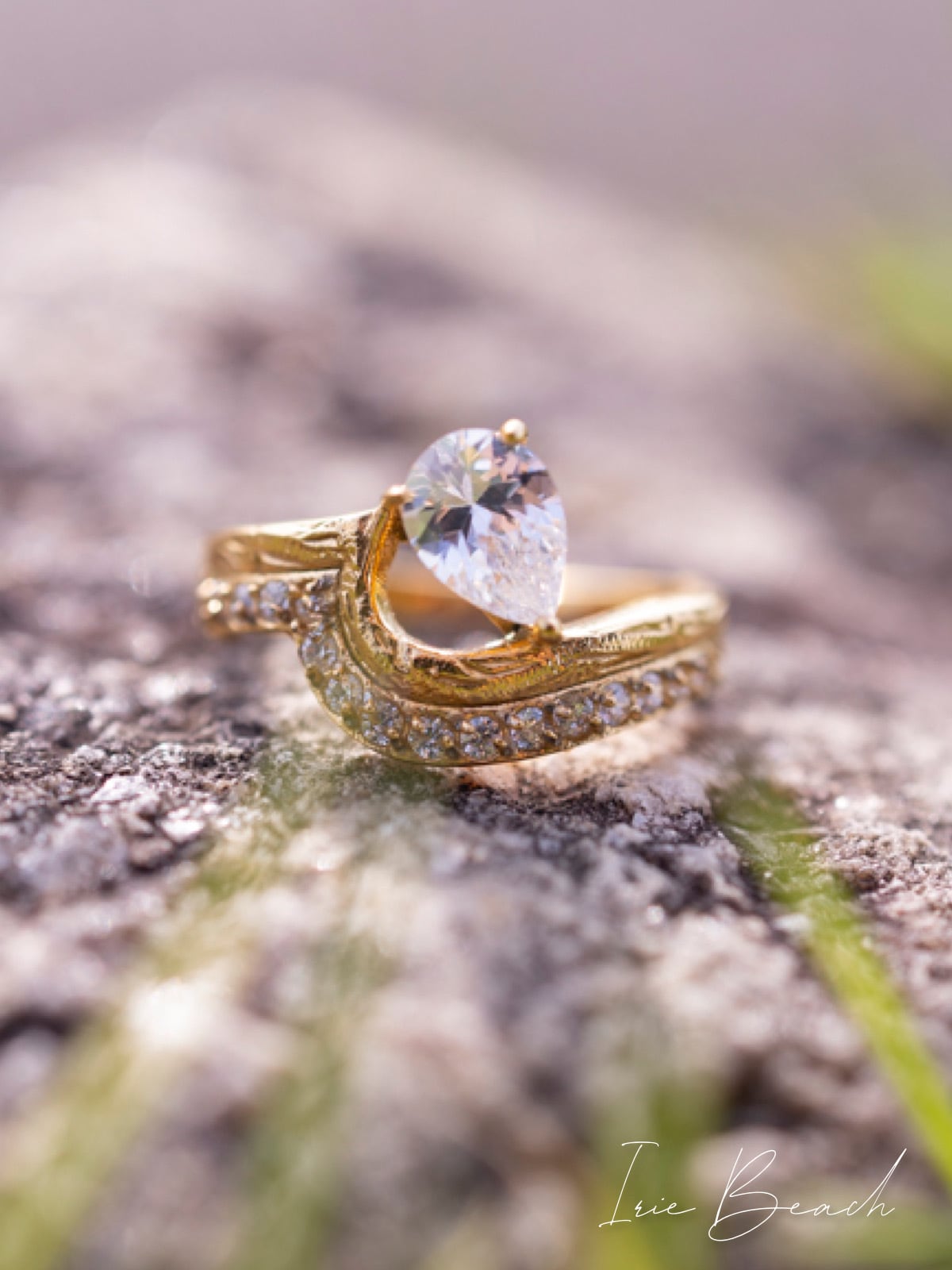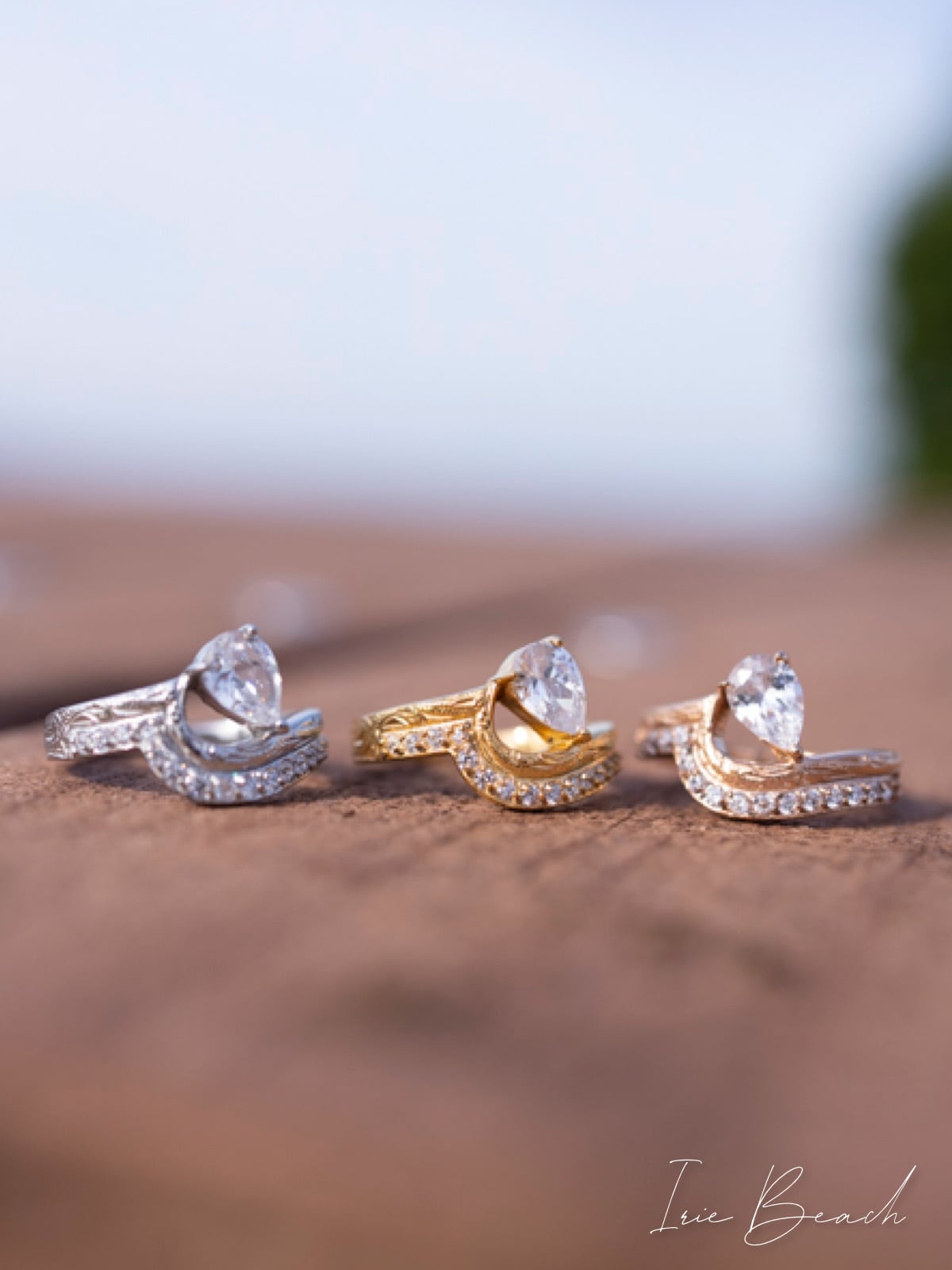 シルエットが際立ち、しずく型ストーンに注目が集まるデザインです。