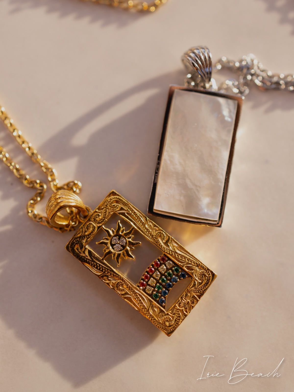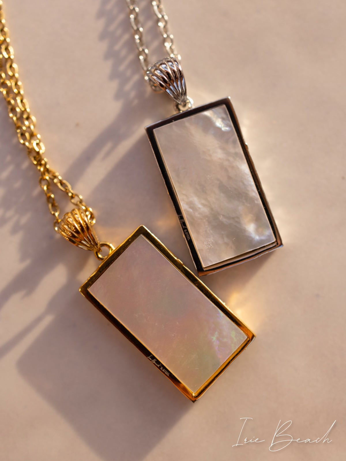 シェルプレートが着けるだけでデコルテが明るい印象に。