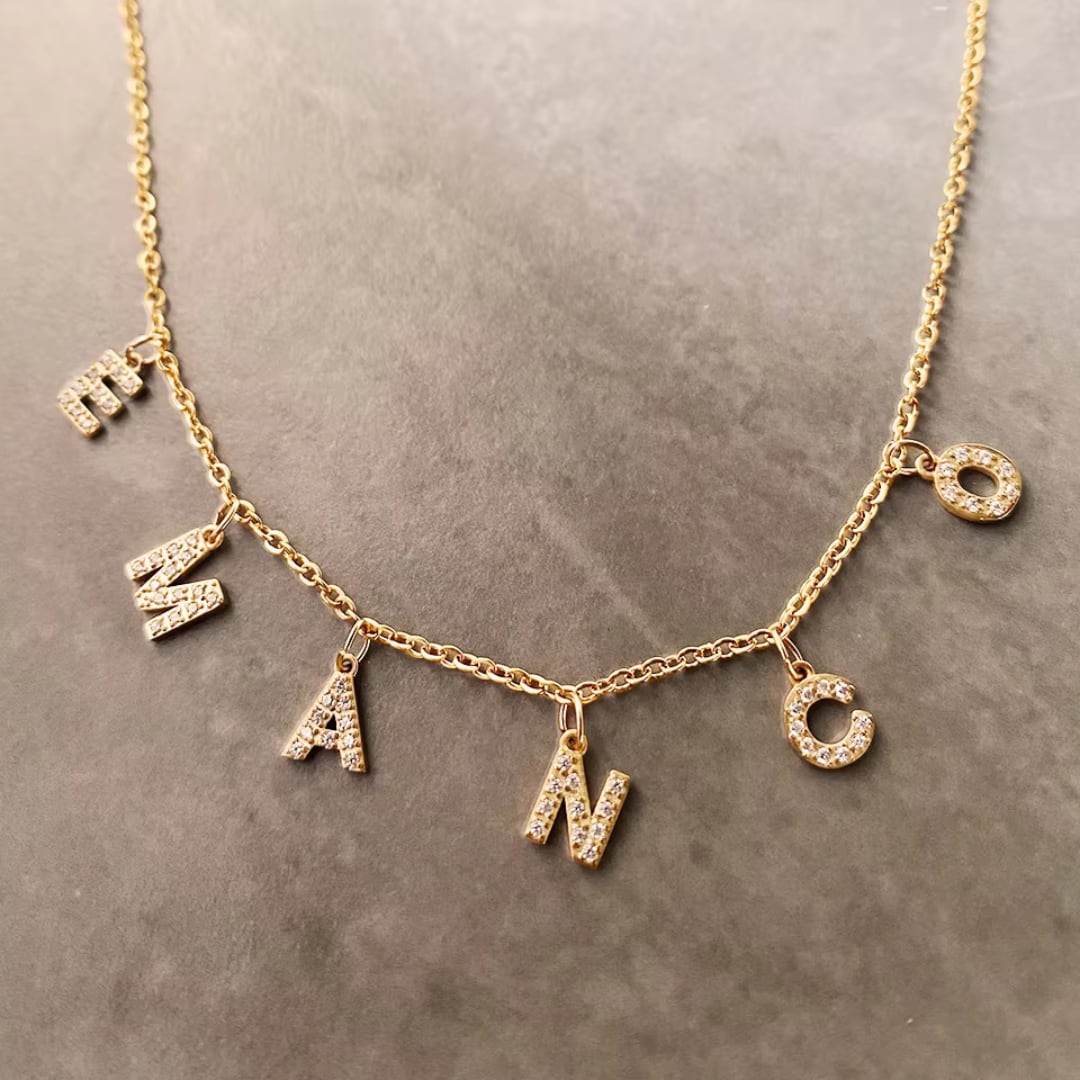 【#lufine】1point ジルコニア ネームネックレス/1文字[オーダー商品]