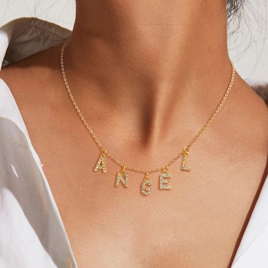 【#lufine】2point ジルコニア ネームネックレス/2文字[オーダー商品]