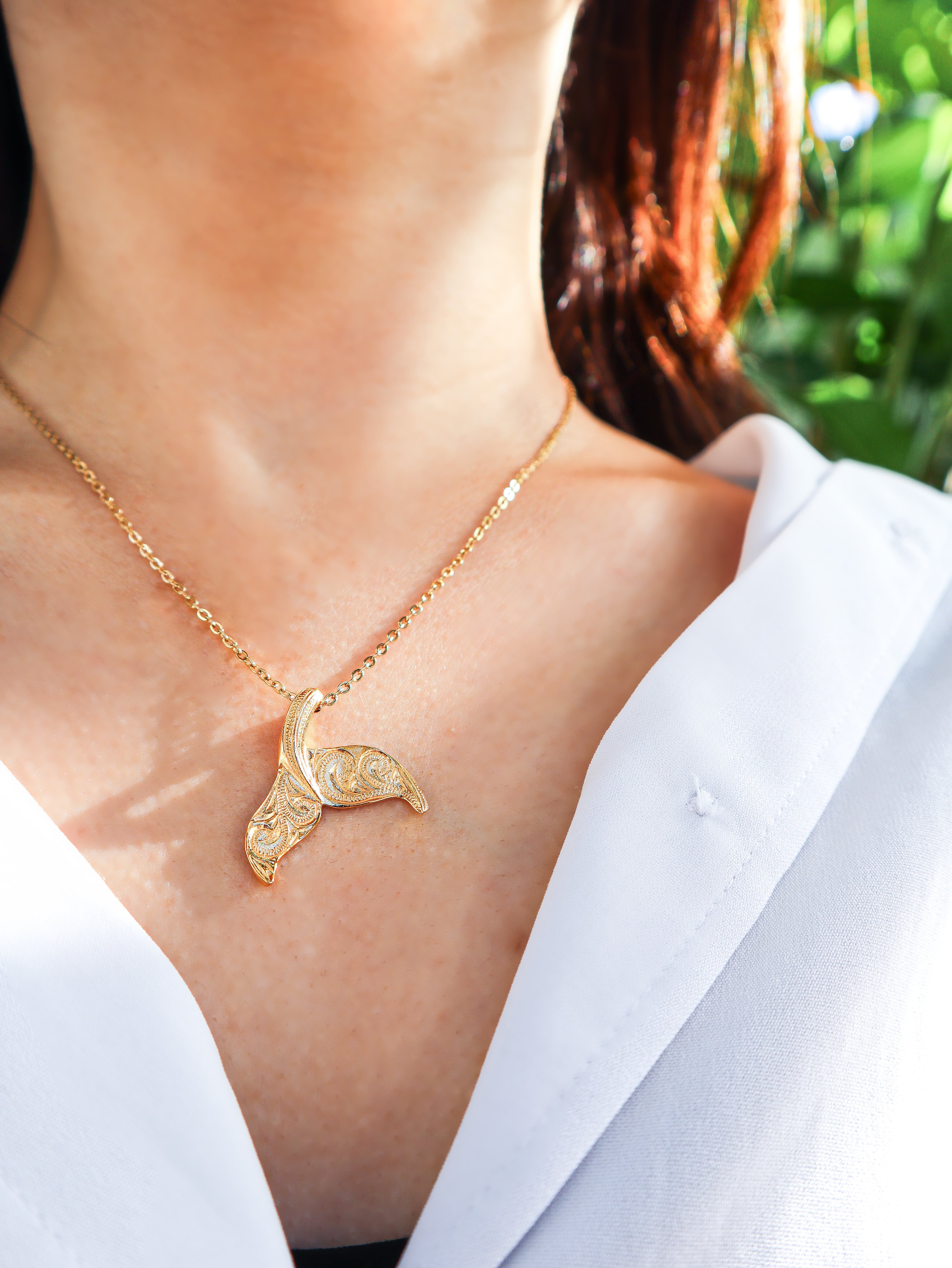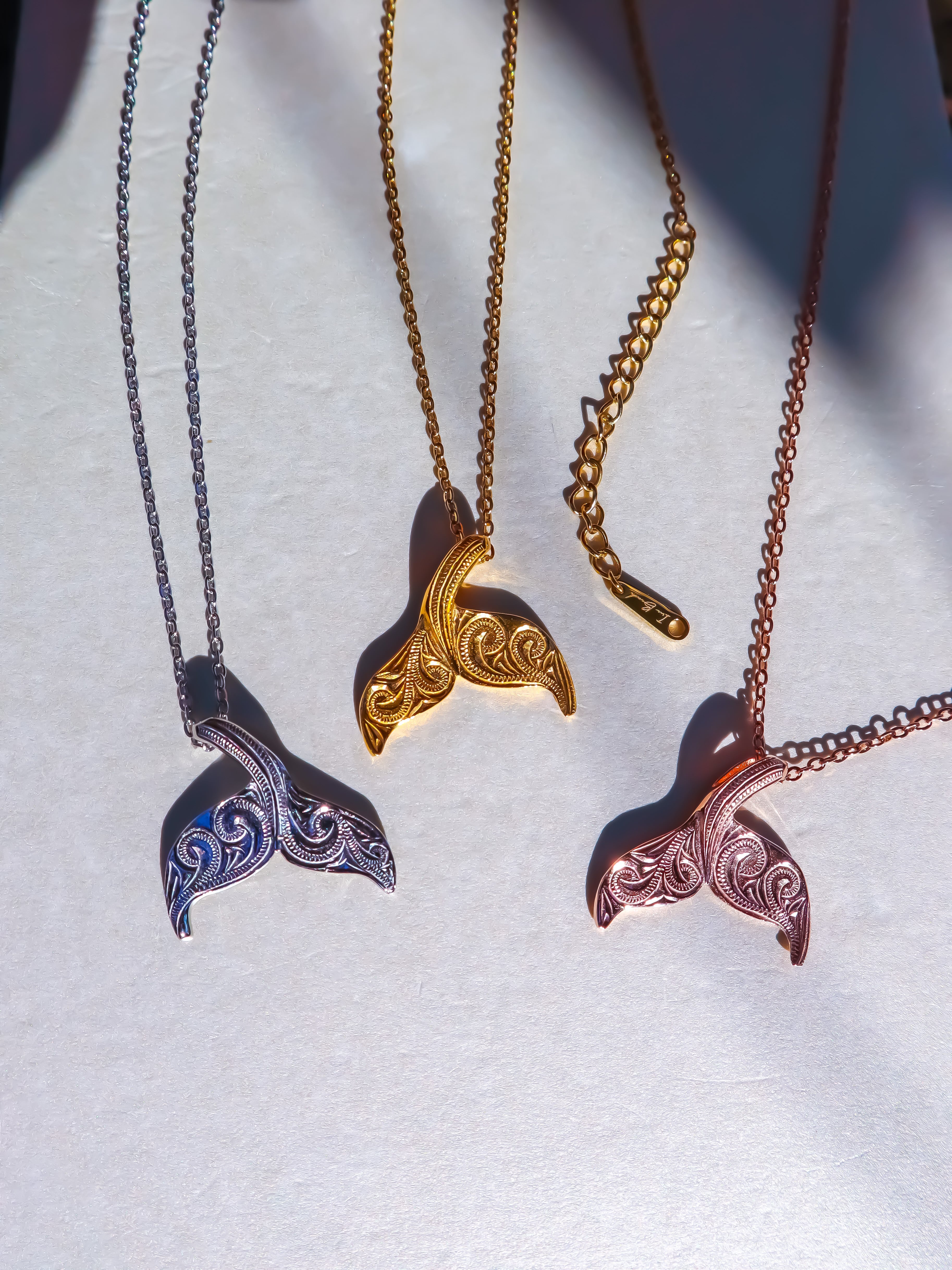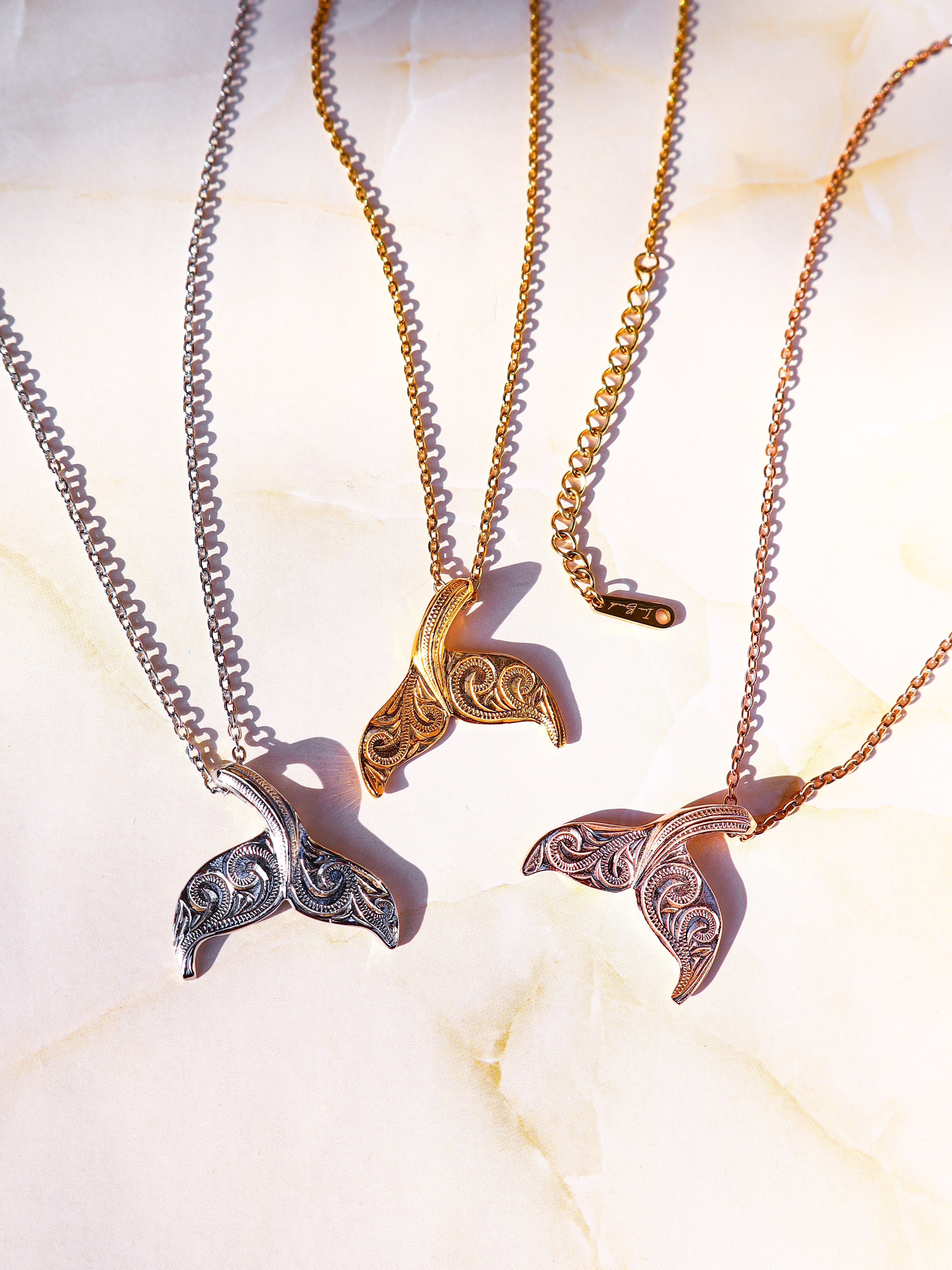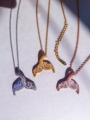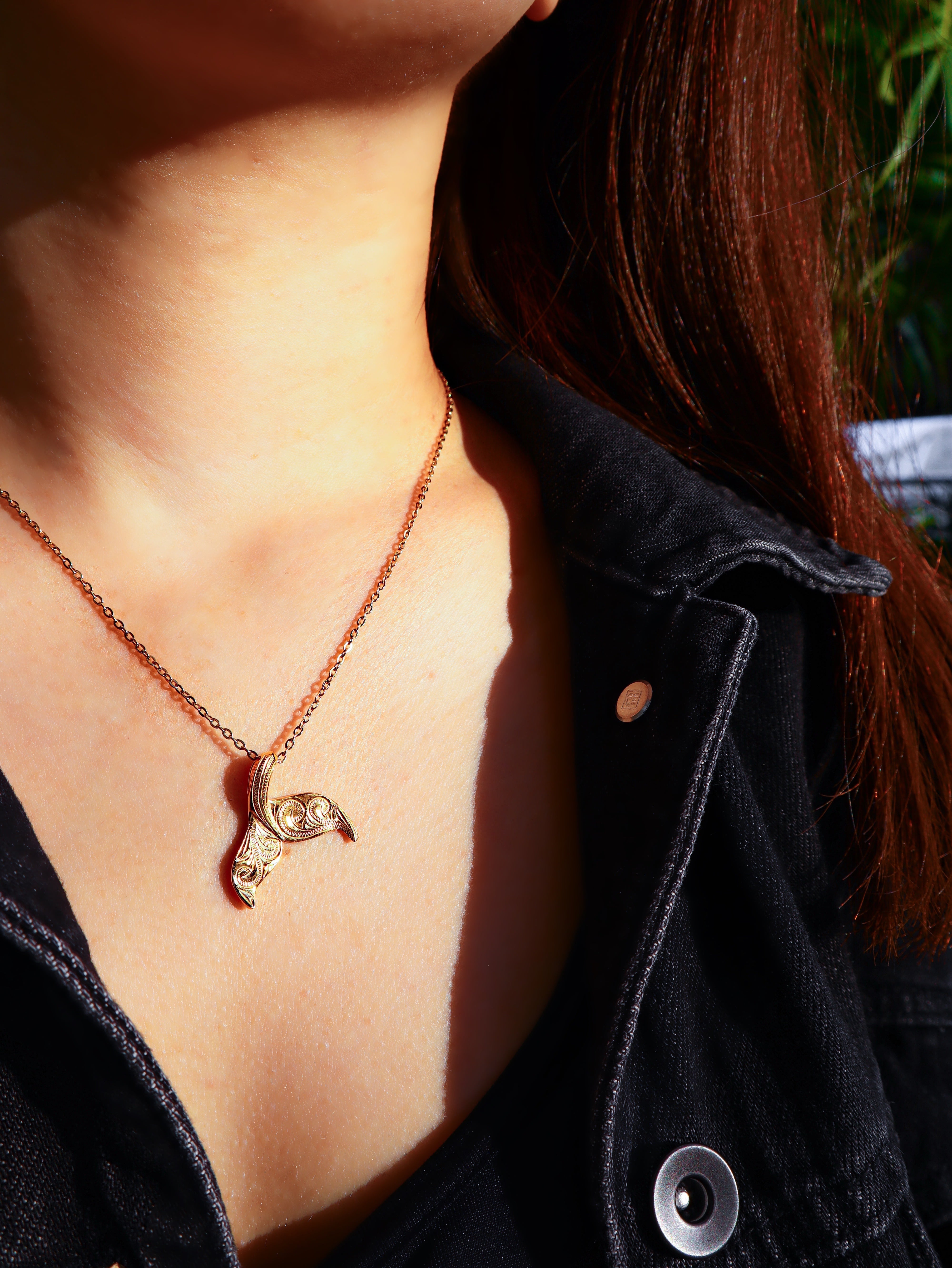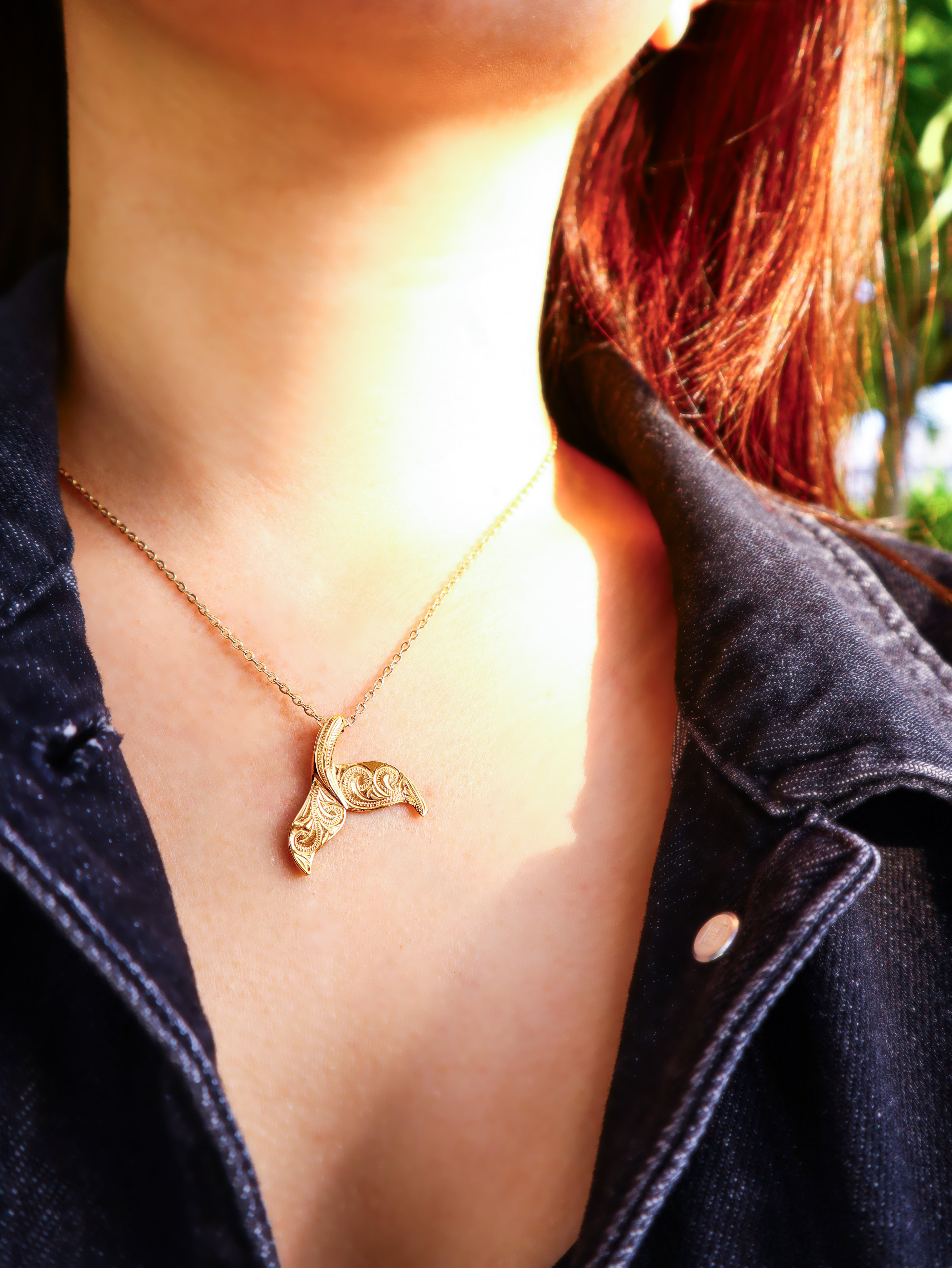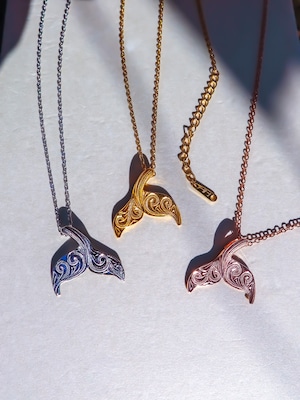 美しく繊細なデザインが施されたホエールテール(クジラの尾)のネックレス。