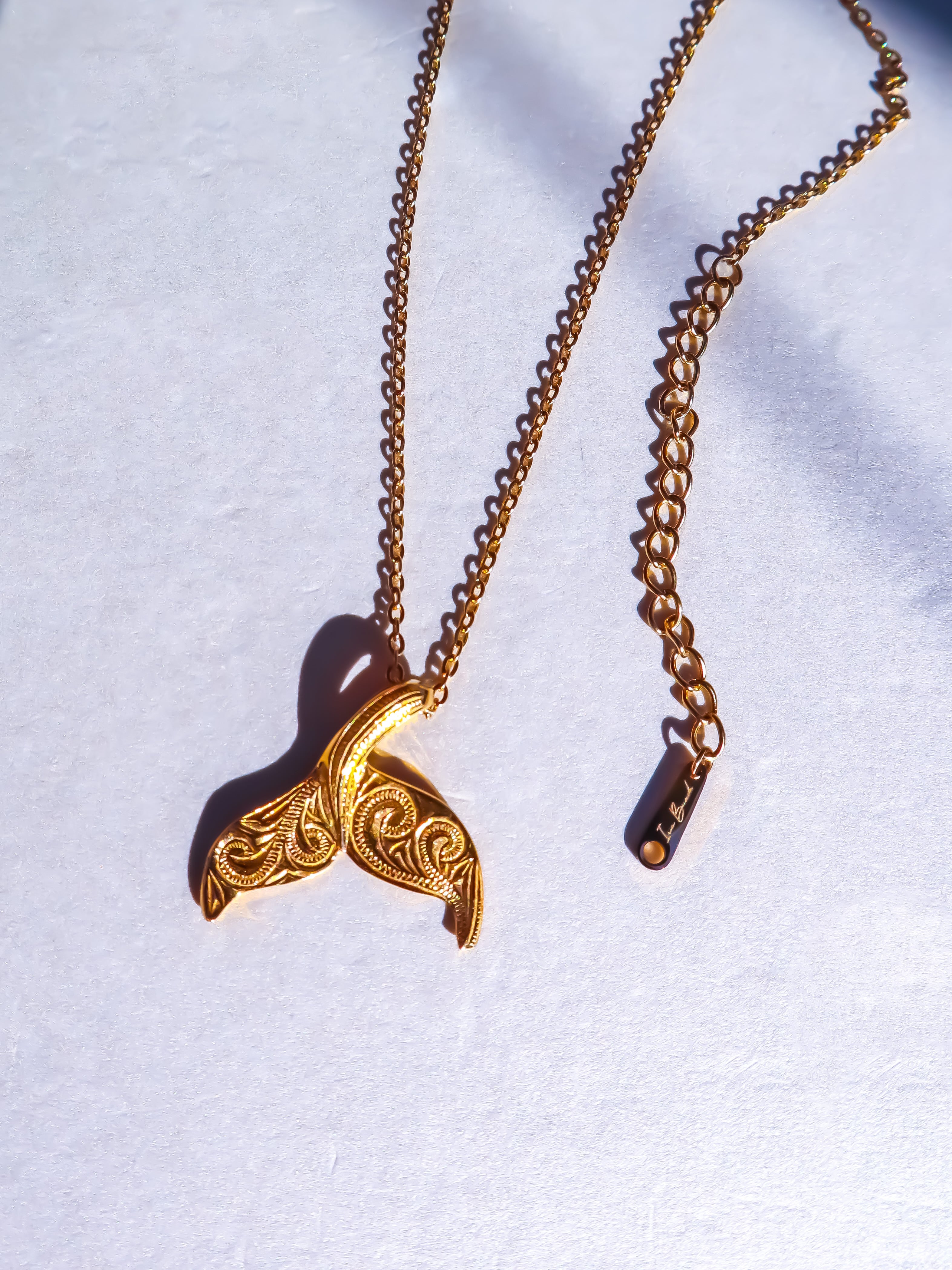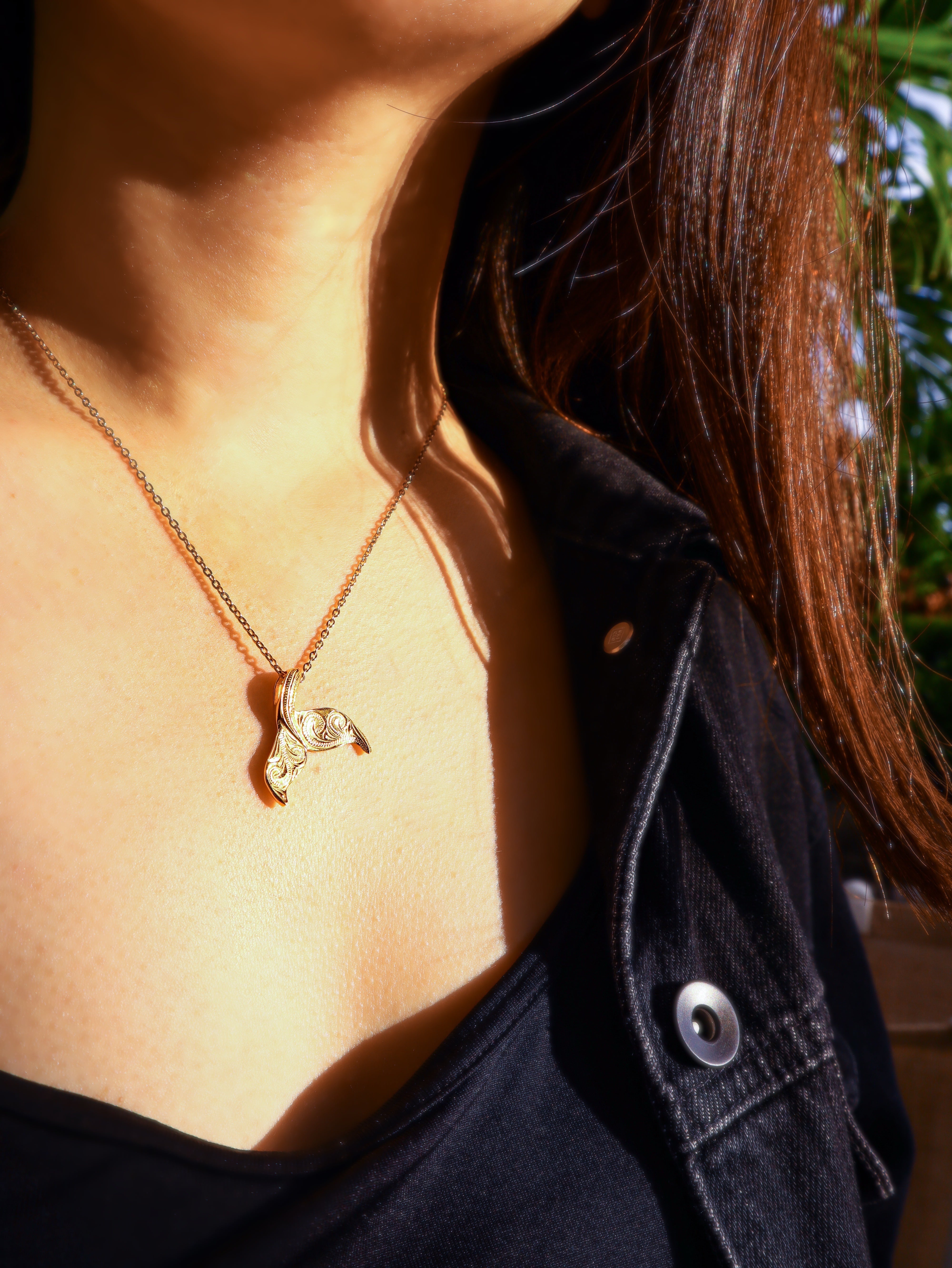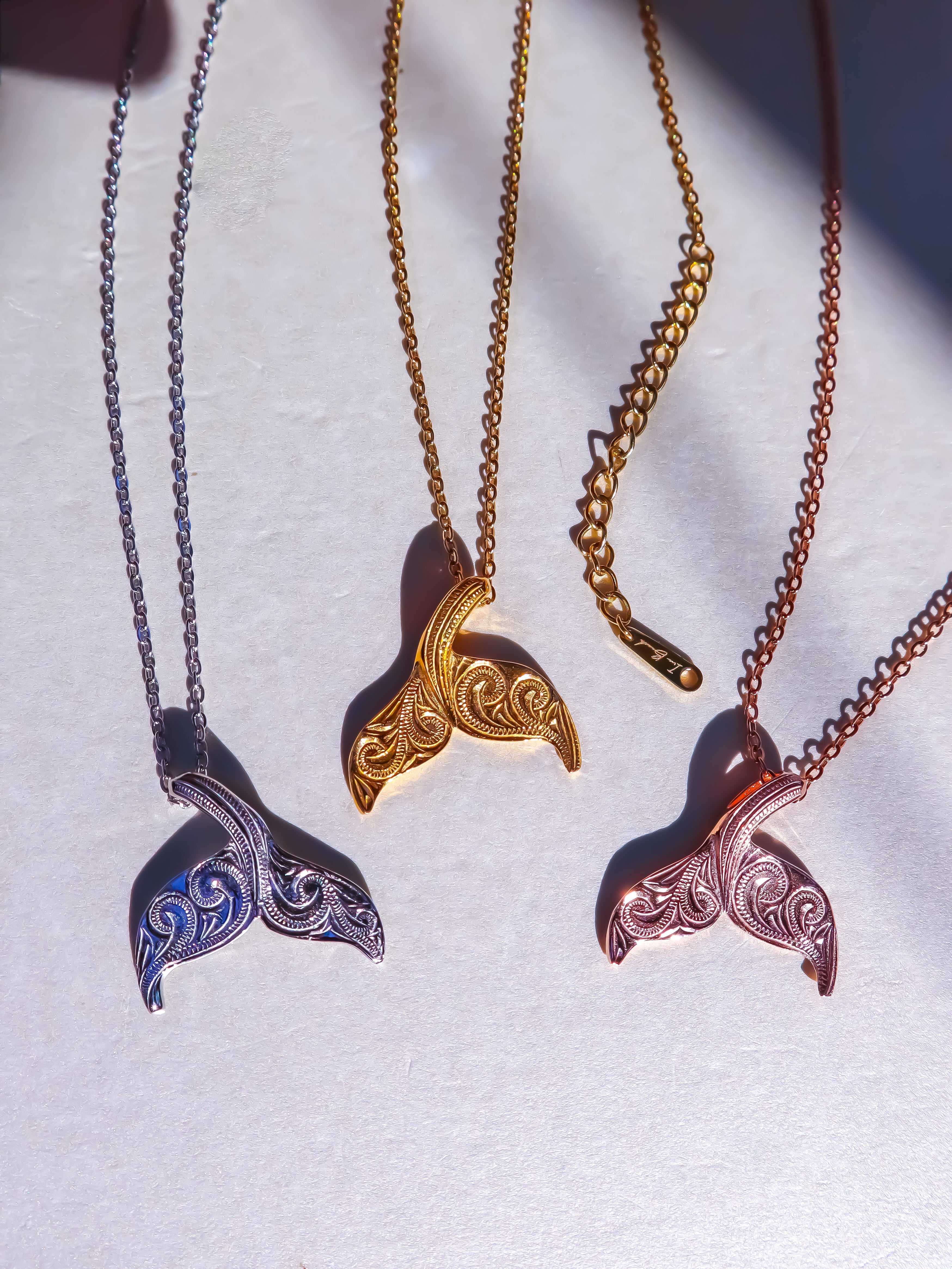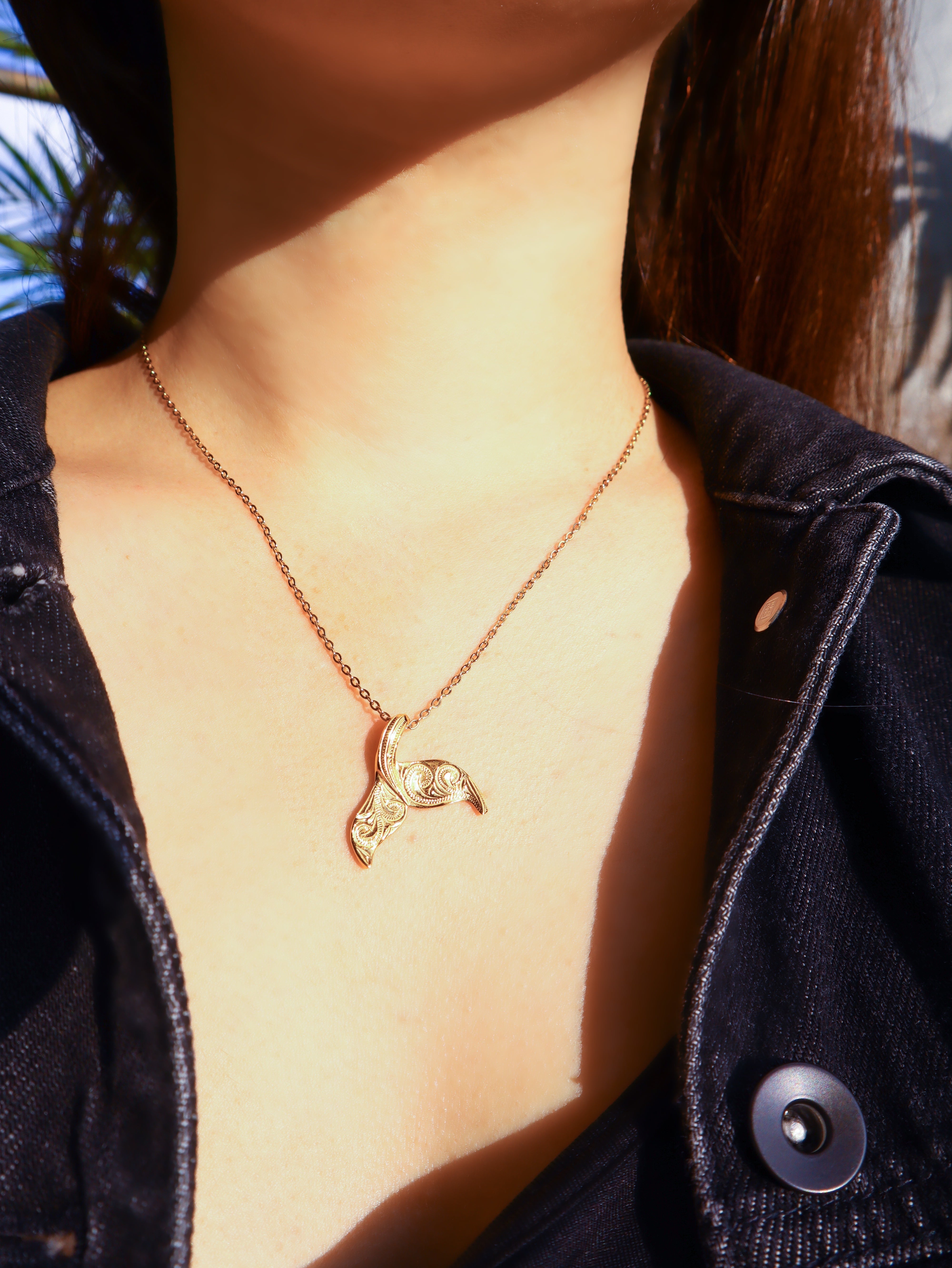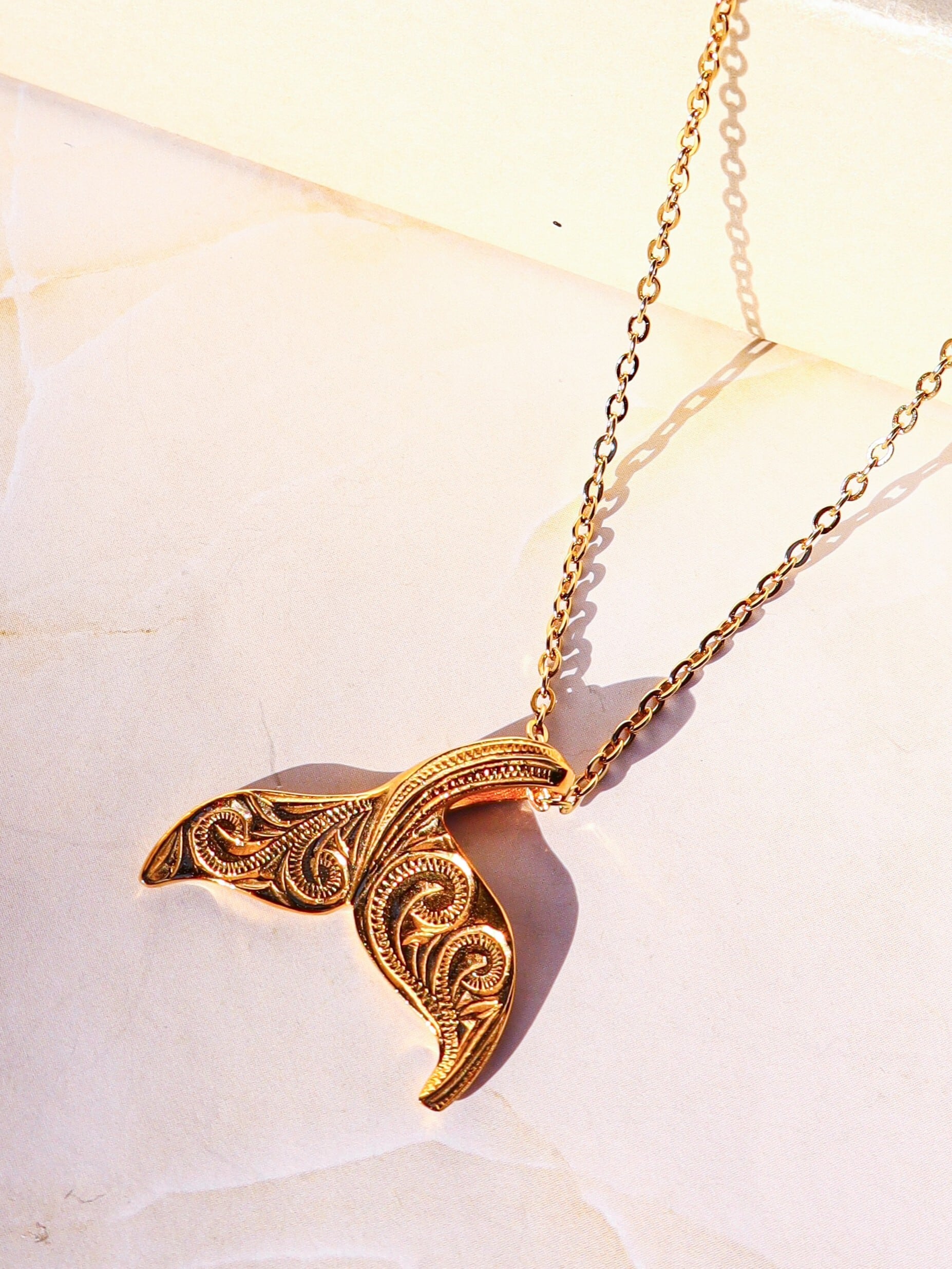美しく繊細なデザインが施されたホエールテール(クジラの尾)のネックレス。