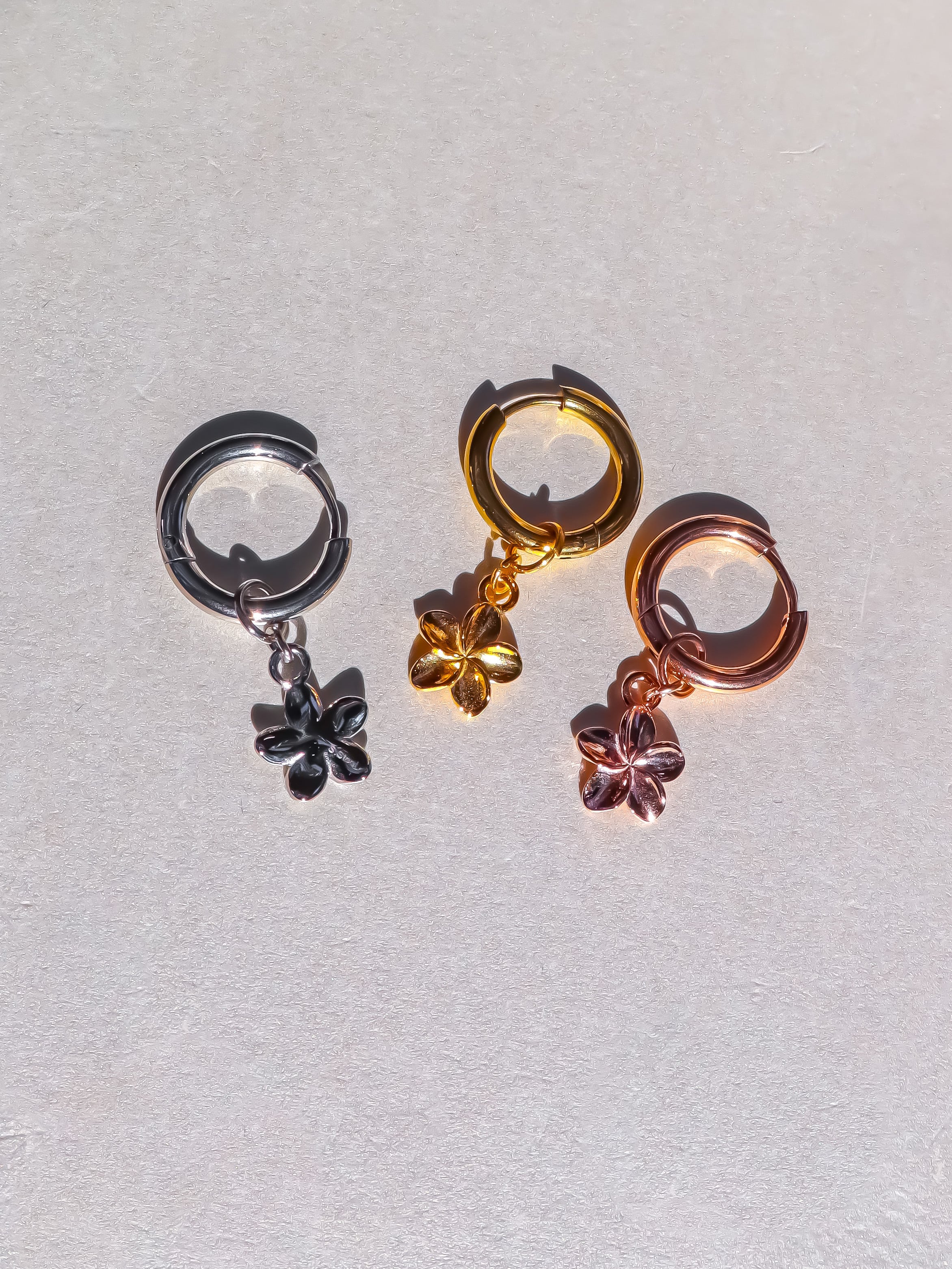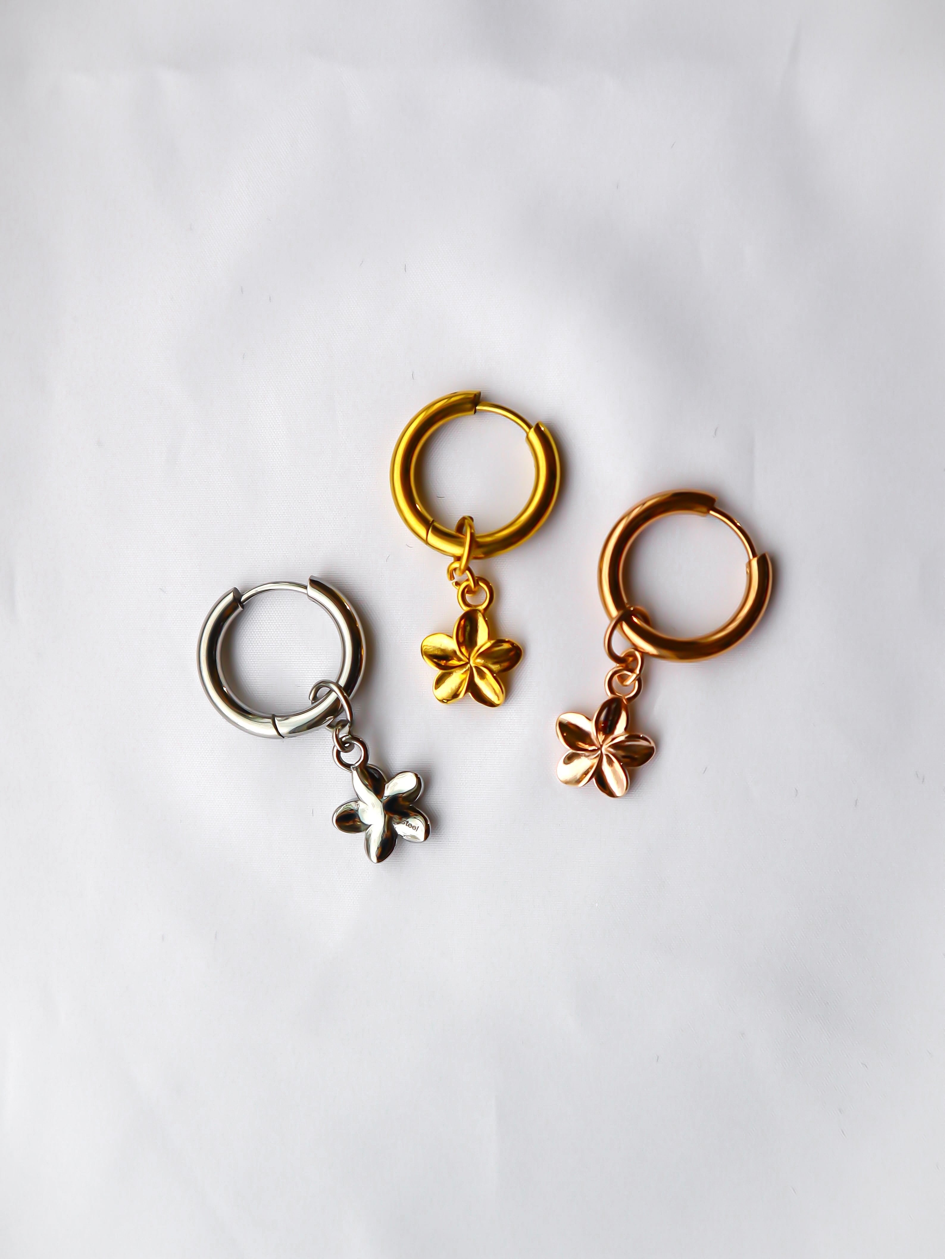 可憐なプルメリアのチャームが揺れるフープピアス。